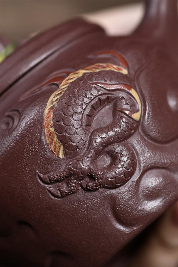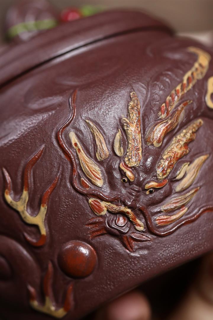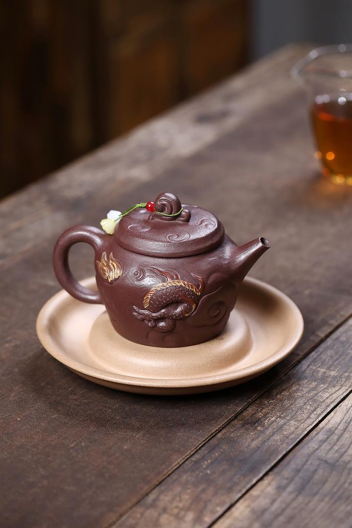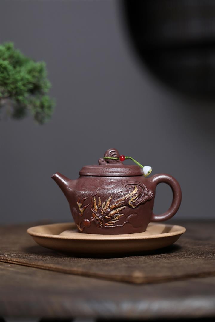 原礦老紫泥浮雕祥龍戲珠茶壺POT7734