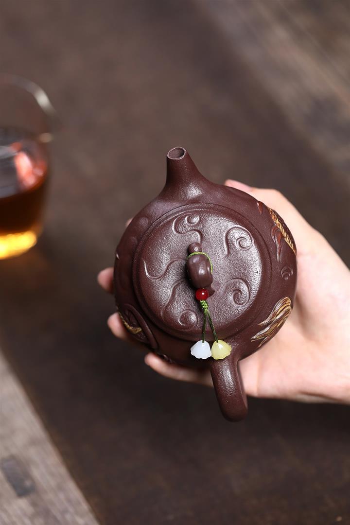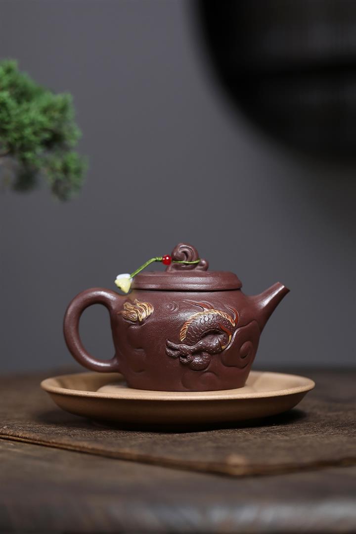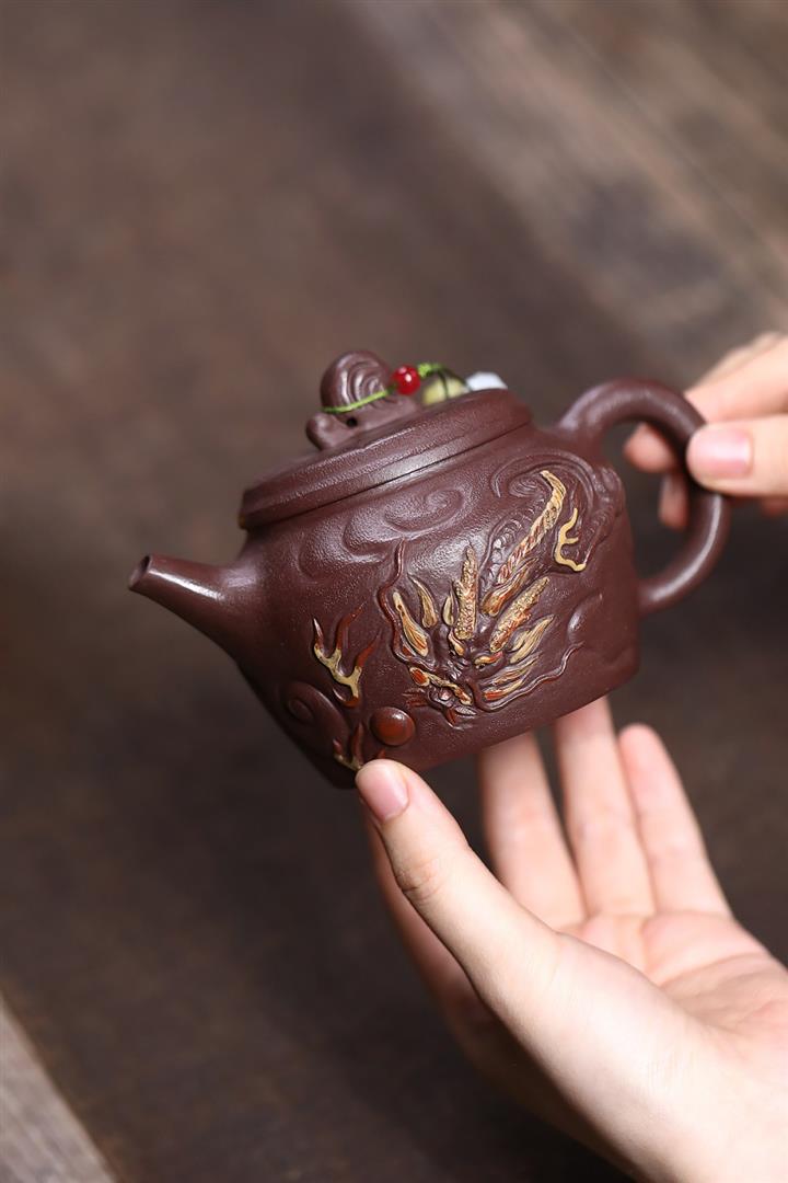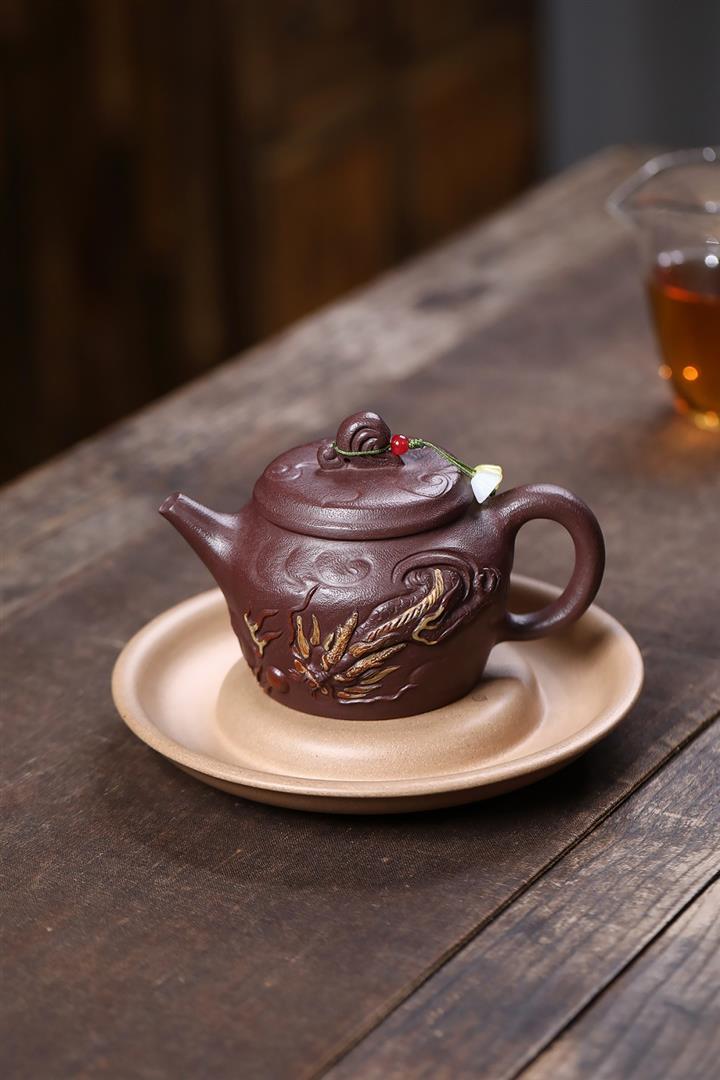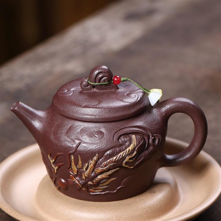 原礦老紫泥浮雕祥龍戲珠茶壺POT7734