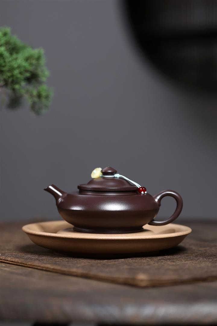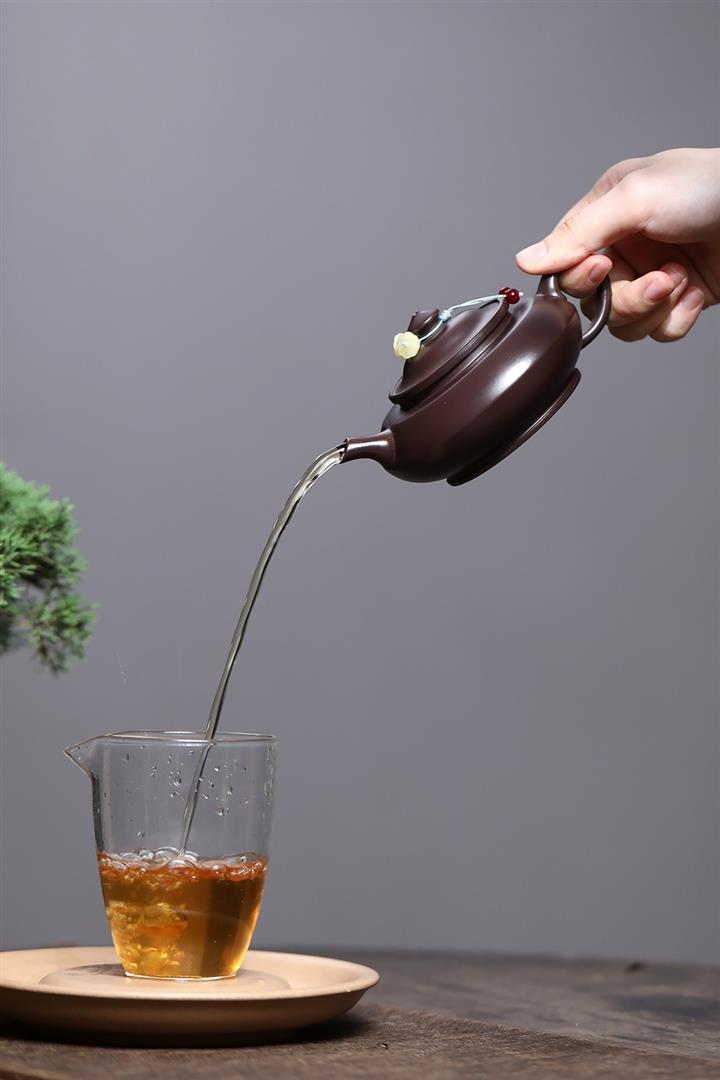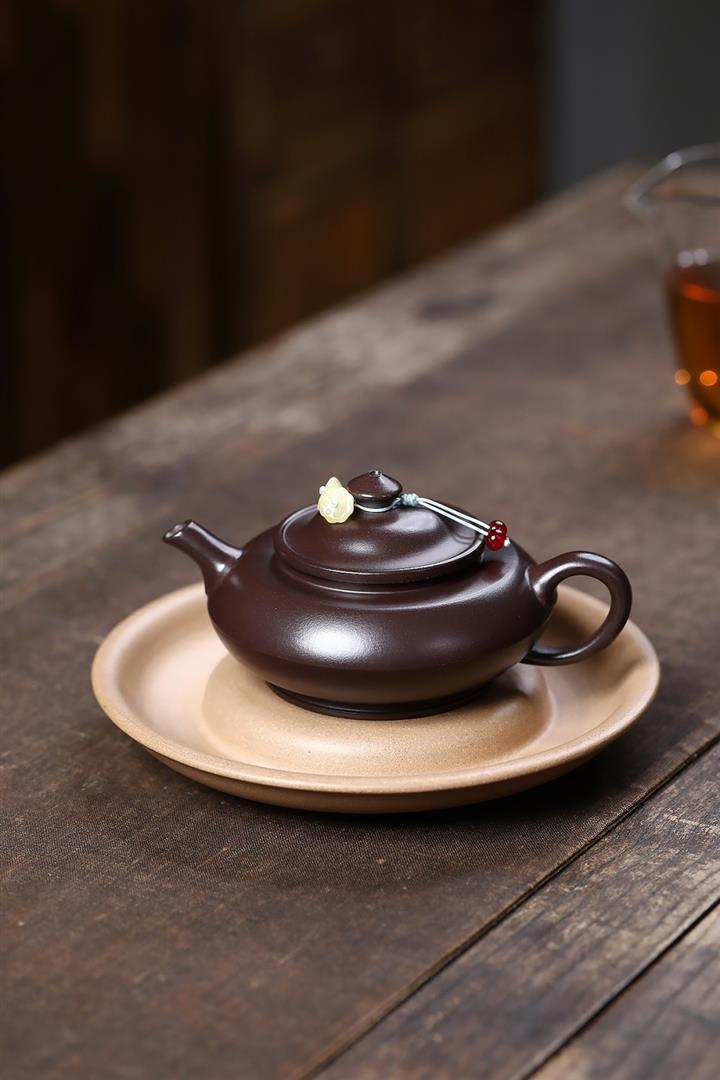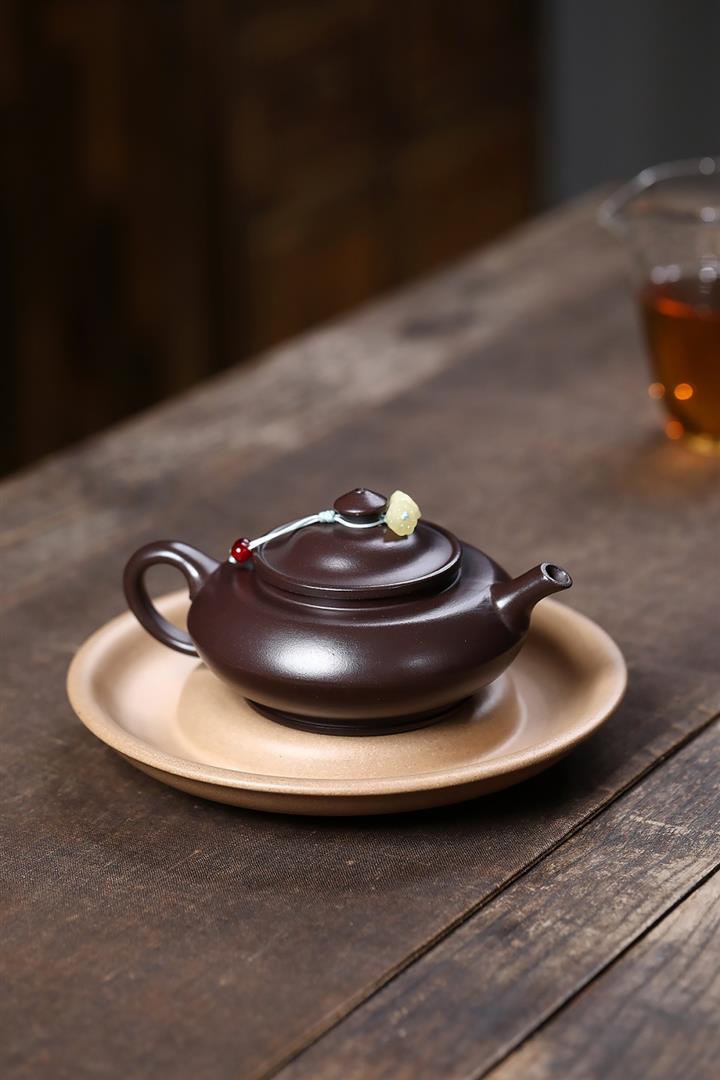 【泥料特點】砂土氣重,似淳實農民,日久使用,漸露鋒芒,養成變化,溫潤莊重。紫砂是壹種雙重氣孔結構的多孔性材質,氣孔微細,密度高。用紫砂壺沏茶,不失原味,且香不渙散,得茶之真香真味。紫砂使用越久,壺身色澤越發光亮照人,氣韻溫雅。紫砂壺長久使用器身會因撫摸擦拭,變得越發溫潤光澤。