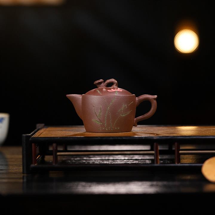 原礦降坡泥刻繪筋紋荷趣茶壺POT7748