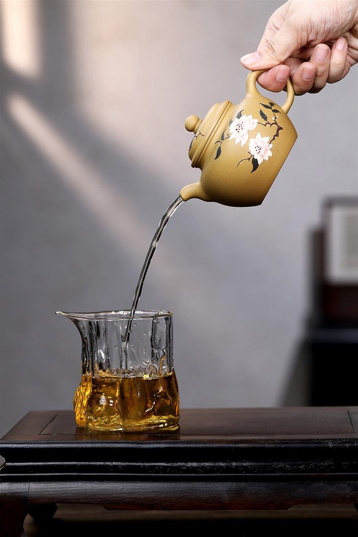 【泥料特點】砂土氣重,似淳實農民,日久使用,漸露鋒芒,養成變化,溫潤莊重。紫砂是壹種雙重氣孔結構的多孔性材質,氣孔微細,密度高。用紫砂壺沏茶,不失原味,且香不渙散,得茶之真香真味。紫砂使用越久,壺身色澤越發光亮照人,氣韻溫雅。紫砂壺長久使用器身會因撫摸擦拭,變得越發溫潤光澤。