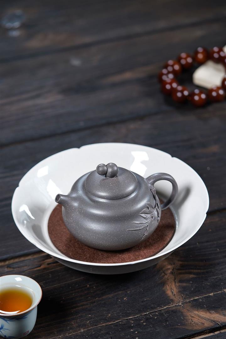 【泥料特點】砂土氣重,似淳實農民,日久使用,漸露鋒芒,養成變化,溫潤莊重。紫砂是壹種雙重氣孔結構的多孔性材質,氣孔微細,密度高。用紫砂壺沏茶,不失原味,且香不渙散,得茶之真香真味。紫砂使用越久,壺身色澤越發光亮照人,氣韻溫雅。紫砂壺長久使用器身會因撫摸擦拭,變得越發溫潤光澤。
