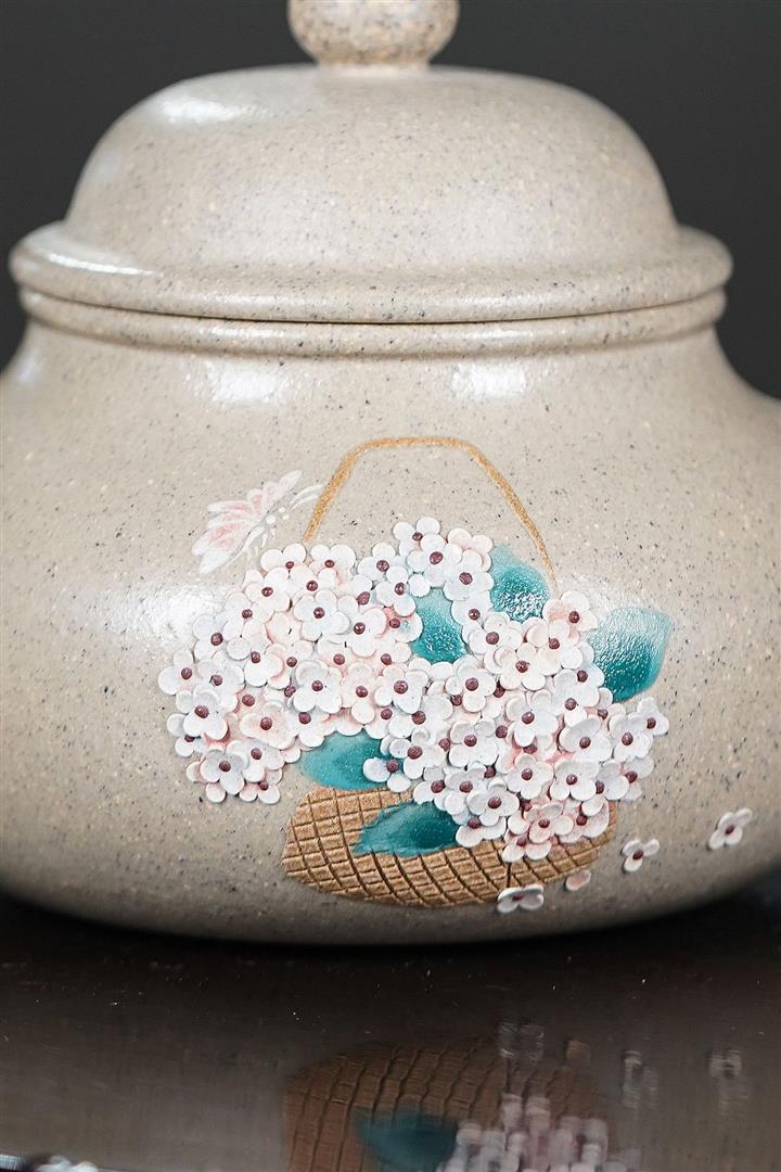 【泥料特點】砂土氣重,似淳實農民,日久使用,漸露鋒芒,養成變化,溫潤莊重。紫砂是壹種雙重氣孔結構的多孔性材質,氣孔微細,密度高。用紫砂壺沏茶,不失原味,且香不渙散,得茶之真香真味。紫砂使用越久,壺身色澤越發光亮照人,氣韻溫雅。紫砂壺長久使用器身會因撫摸擦拭,變得越發溫潤光澤。