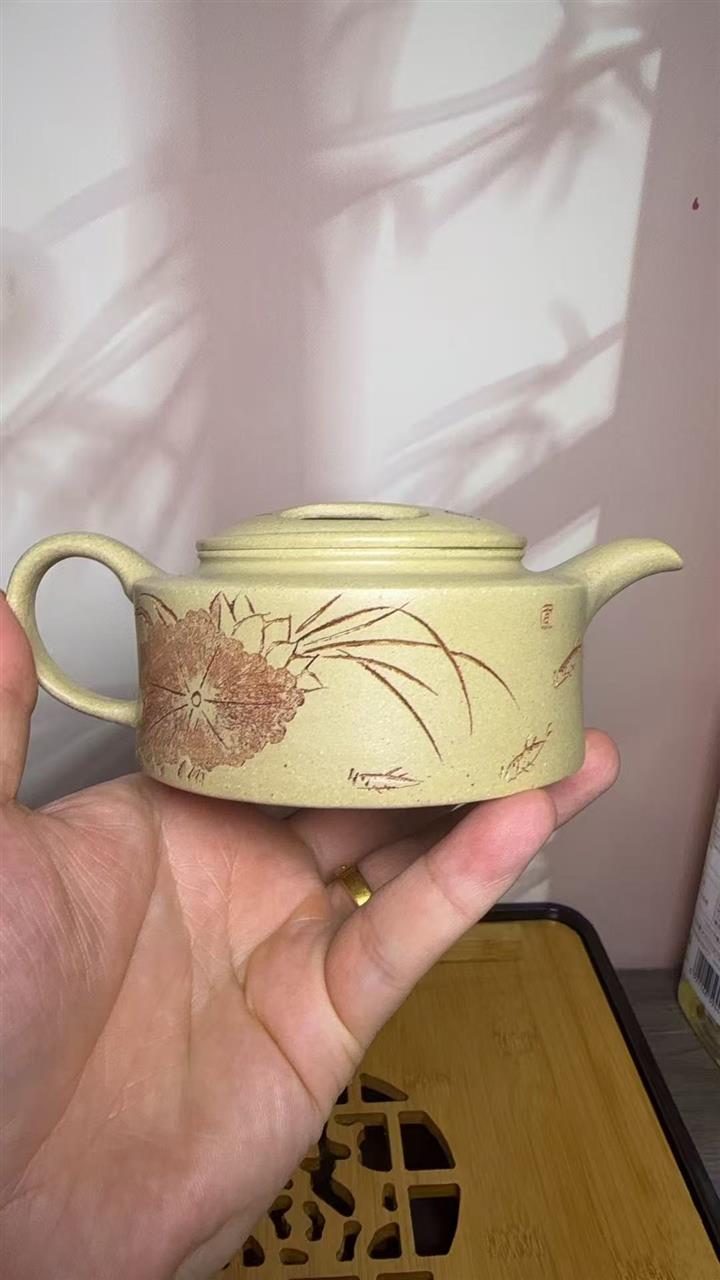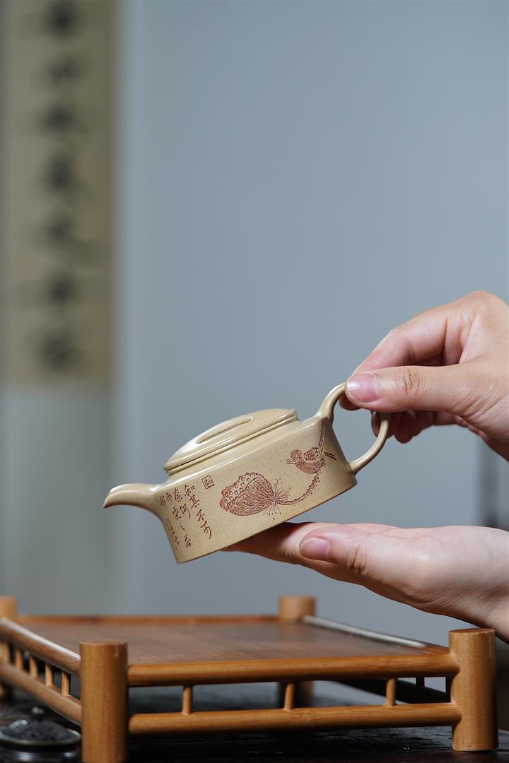 原礦石黃笠帽水平名家手制茶壺POT7777