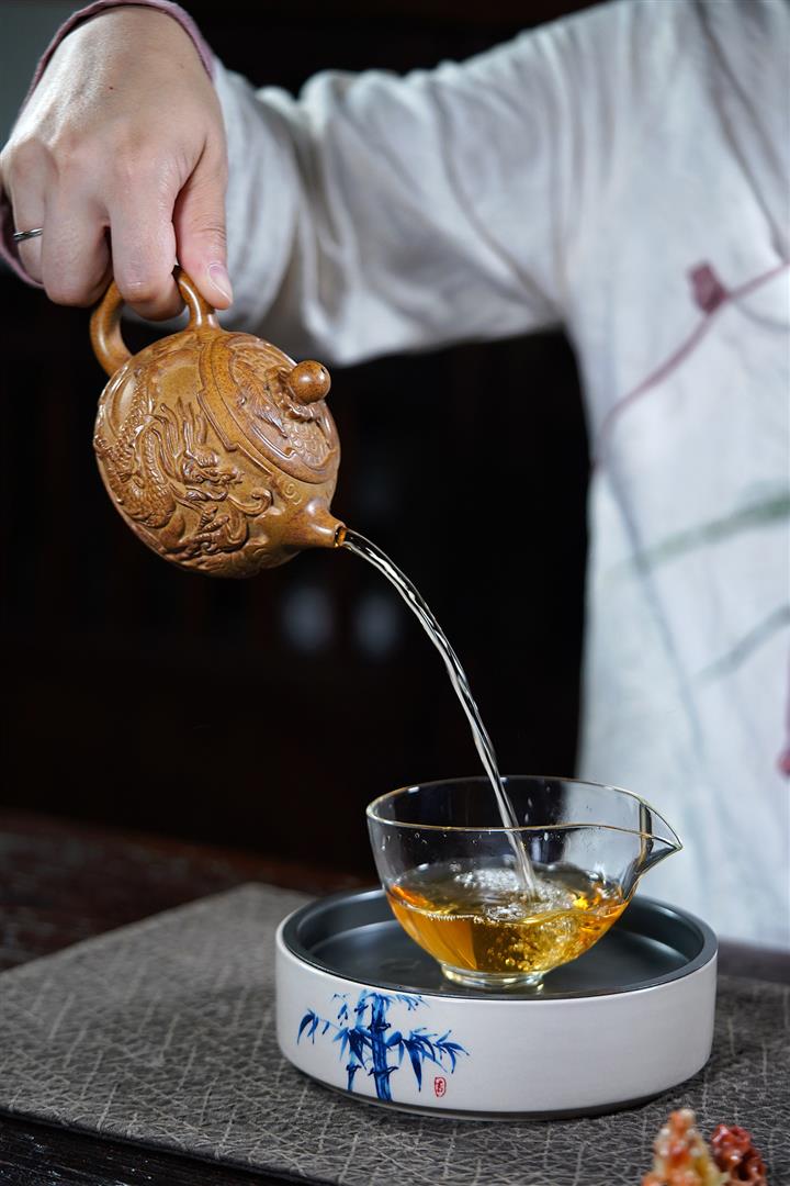 【泥料特點】砂土氣重,似淳實農民,日久使用,漸露鋒芒,養成變化,溫潤莊重。紫砂是壹種雙重氣孔結構的多孔性材質,氣孔微細,密度高。用紫砂壺沏茶,不失原味,且香不渙散,得茶之真香真味。紫砂使用越久,壺身色澤越發光亮照人,氣韻溫雅。紫砂壺長久使用器身會因撫摸擦拭,變得越發溫潤光澤。