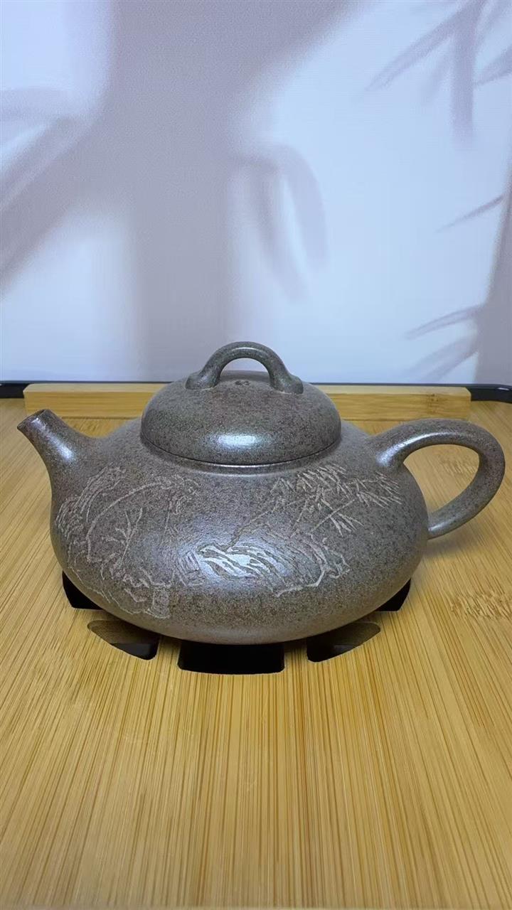 【作品介紹】此款壺形線條流暢,壺把,壺嘴,壺身壹氣呵成栩栩如生,是收藏把玩的好壺,泥料色澤古樸典雅,日久使用,漸露鋒芒,養成變化快,溫潤莊重,用其泡茶,使用的年代久,壺身就溫潤,泡出來的茶湯也就醇郁芳馨。