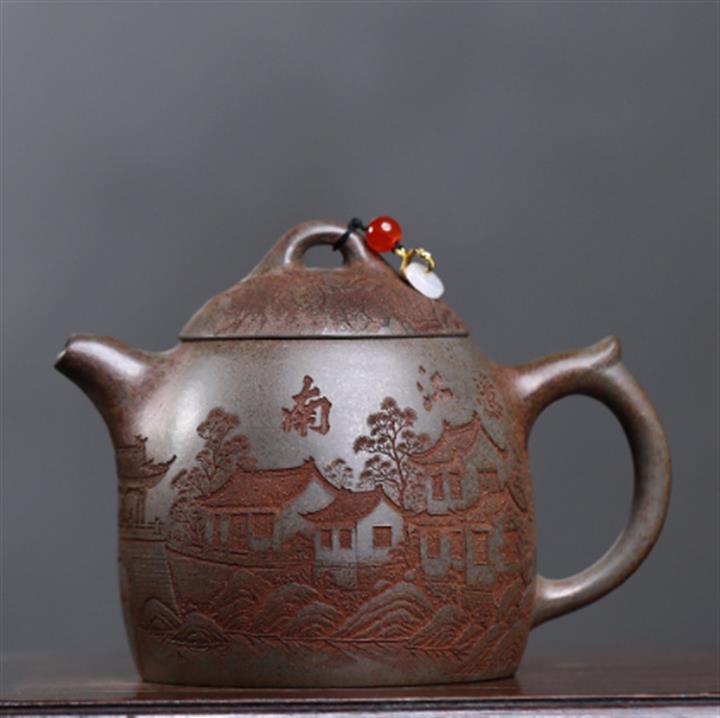 原礦小煤窯朱泥刻繪小蘋果茶壺POT7776