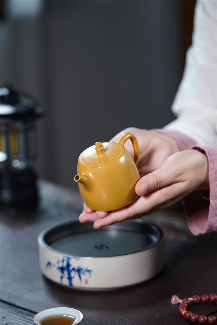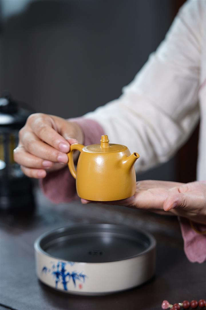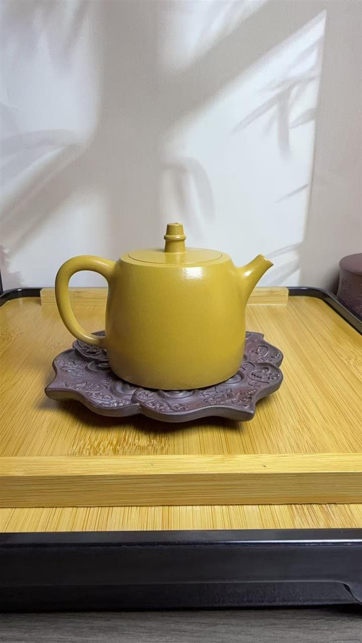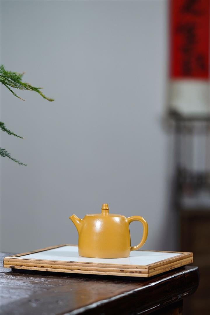原礦石黃笠帽水平名家手制茶壺POT7777