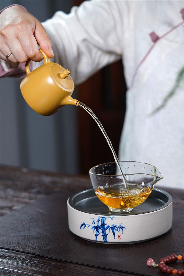 【泥料特點】砂土氣重,似淳實農民,日久使用,漸露鋒芒,養成變化,溫潤莊重。紫砂是壹種雙重氣孔結構的多孔性材質,氣孔微細,密度高。用紫砂壺沏茶,不失原味,且香不渙散,得茶之真香真味。紫砂使用越久,壺身色澤越發光亮照人,氣韻溫雅。紫砂壺長久使用器身會因撫摸擦拭,變得越發溫潤光澤。