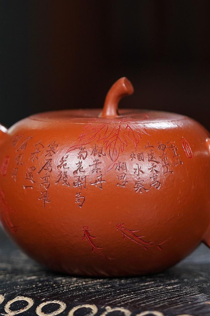 原礦小煤窯朱泥刻繪小蘋果茶壺POT7776
