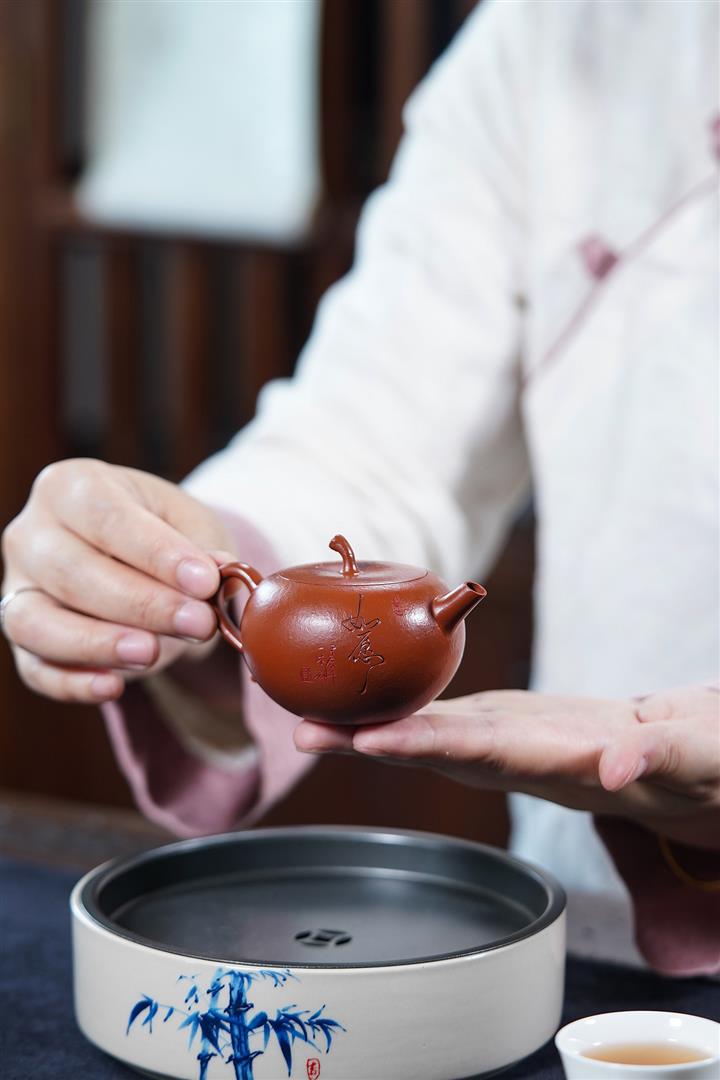 原礦大紅袍焐灰筋紋錦囊茶壺POT7785