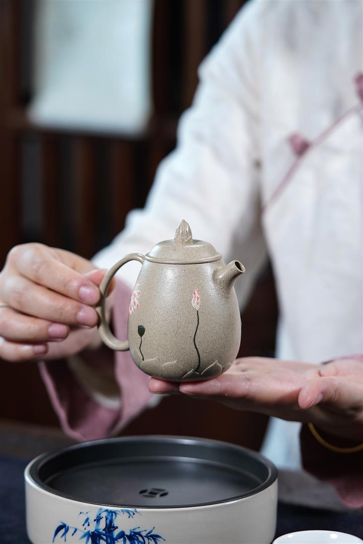 【泥料特點】砂土氣重,似淳實農民,日久使用,漸露鋒芒,養成變化,溫潤莊重。紫砂是壹種雙重氣孔結構的多孔性材質,氣孔微細,密度高。用紫砂壺沏茶,不失原味,且香不渙散,得茶之真香真味。紫砂使用越久,壺身色澤越發光亮照人,氣韻溫雅。紫砂壺長久使用器身會因撫摸擦拭,變得越發溫潤光澤。