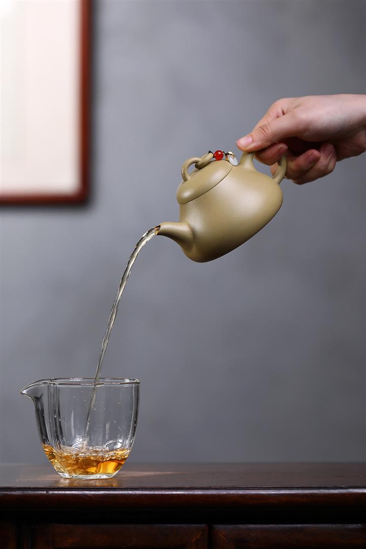 【泥料特點】砂土氣重,似淳實農民,日久使用,漸露鋒芒,養成變化,溫潤莊重。紫砂是壹種雙重氣孔結構的多孔性材質,氣孔微細,密度高。用紫砂壺沏茶,不失原味,且香不渙散,得茶之真香真味。紫砂使用越久,壺身色澤越發光亮照人,氣韻溫雅。紫砂壺長久使用器身會因撫摸擦拭,變得越發溫潤光澤。