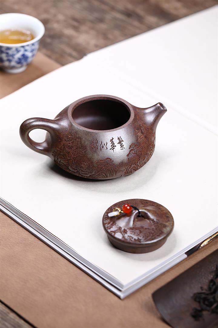 原礦大紅袍焐灰筋紋錦囊茶壺POT7785