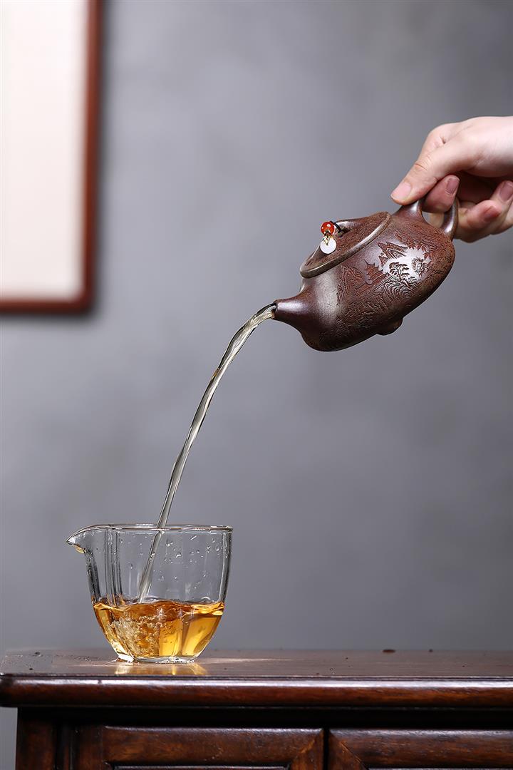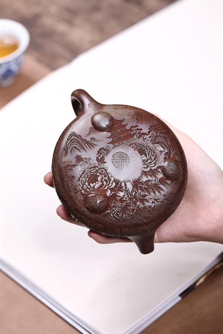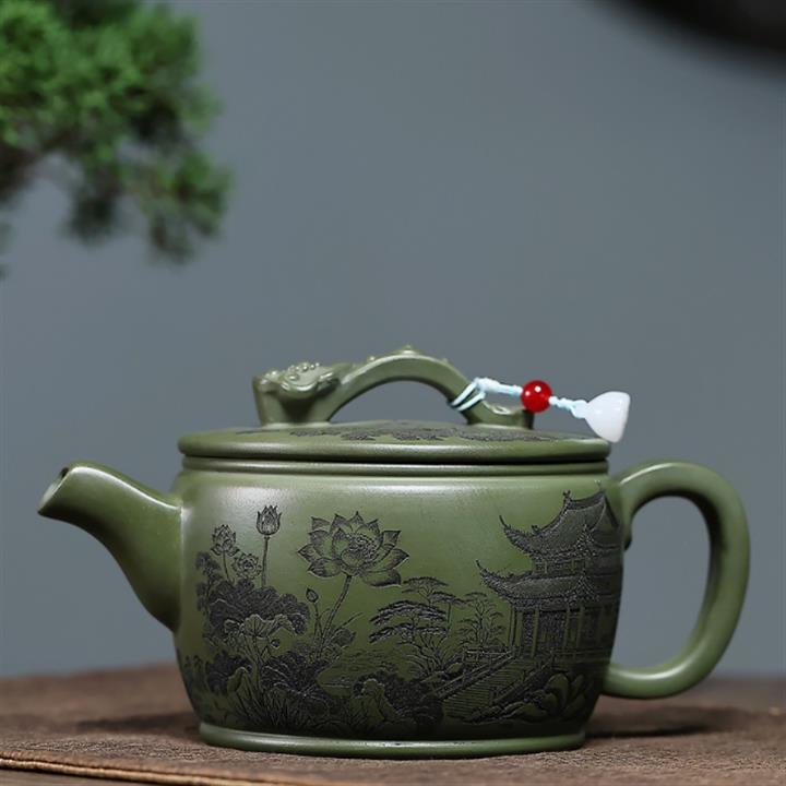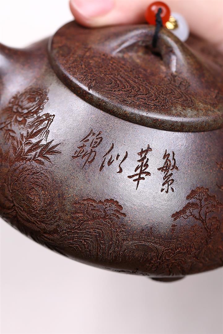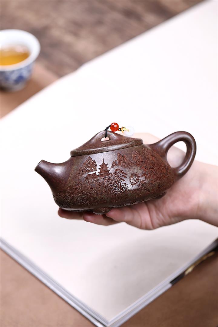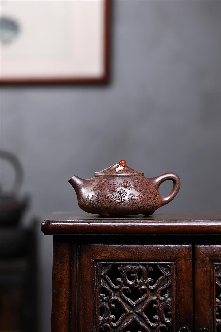 原礦紫泥刻繪山水德鐘茶壺POT7787