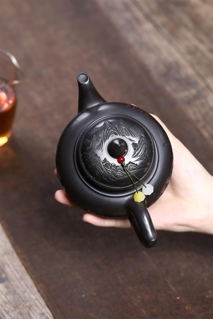 原礦紫泥刻繪山水德鐘茶壺POT7787