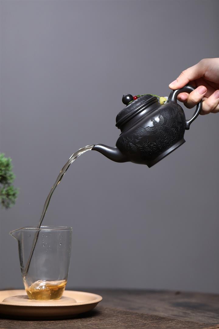 【作品介紹】此款壺形線條流暢,壺把,壺嘴,壺身壹氣呵成栩栩如生,是收藏把玩的好壺,泥料色澤古樸典雅,日久使用,漸露鋒芒,養成變化快,溫潤莊重,用其泡茶,使用的年代久,壺身就溫潤,泡出來的茶湯也就醇郁芳馨。