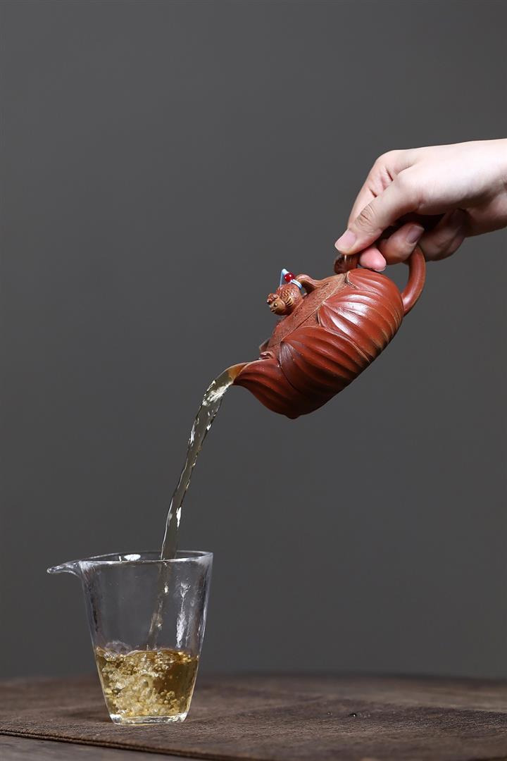【泥料特點】砂土氣重,似淳實農民,日久使用,漸露鋒芒,養成變化,溫潤莊重。紫砂是壹種雙重氣孔結構的多孔性材質,氣孔微細,密度高。用紫砂壺沏茶,不失原味,且香不渙散,得茶之真香真味。紫砂使用越久,壺身色澤越發光亮照人,氣韻溫雅。紫砂壺長久使用器身會因撫摸擦拭,變得越發溫潤光澤。