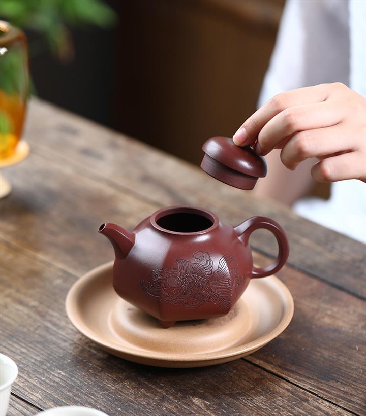【泥料特點】砂土氣重,似淳實農民,日久使用,漸露鋒芒,養成變化,溫潤莊重。紫砂是壹種雙重氣孔結構的多孔性材質,氣孔微細,密度高。用紫砂壺沏茶,不失原味,且香不渙散,得茶之真香真味。紫砂使用越久,壺身色澤越發光亮照人,氣韻溫雅。紫砂壺長久使用器身會因撫摸擦拭,變得越發溫潤光澤。