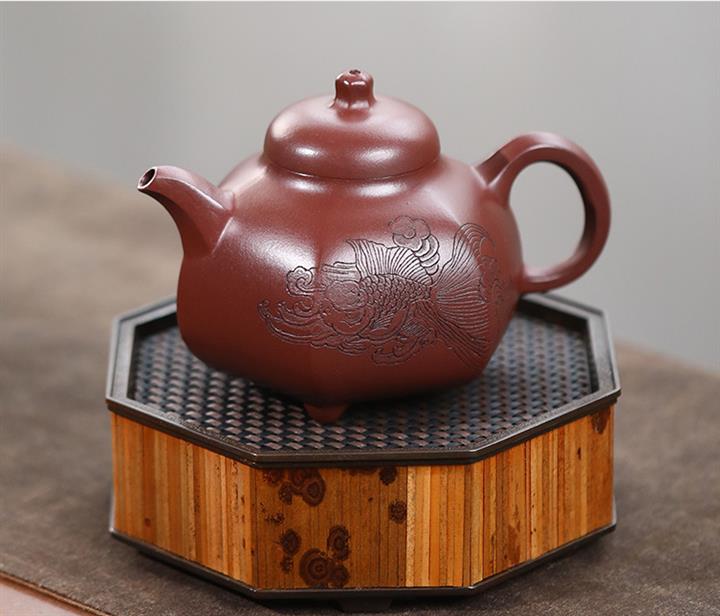 原礦紅降坡彩繪山水三足鼎立茶壺POT7805