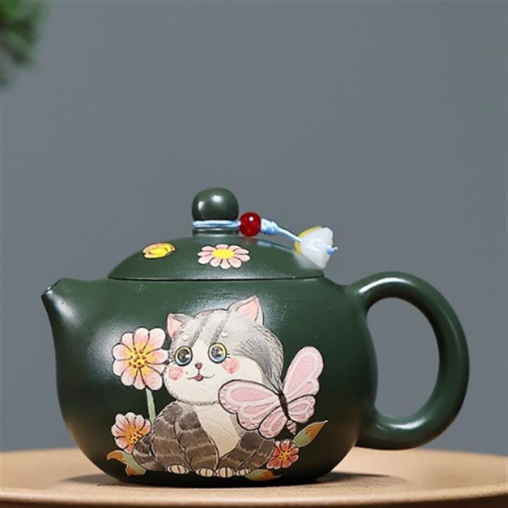 原礦紅降坡彩繪山水三足鼎立茶壺POT7805