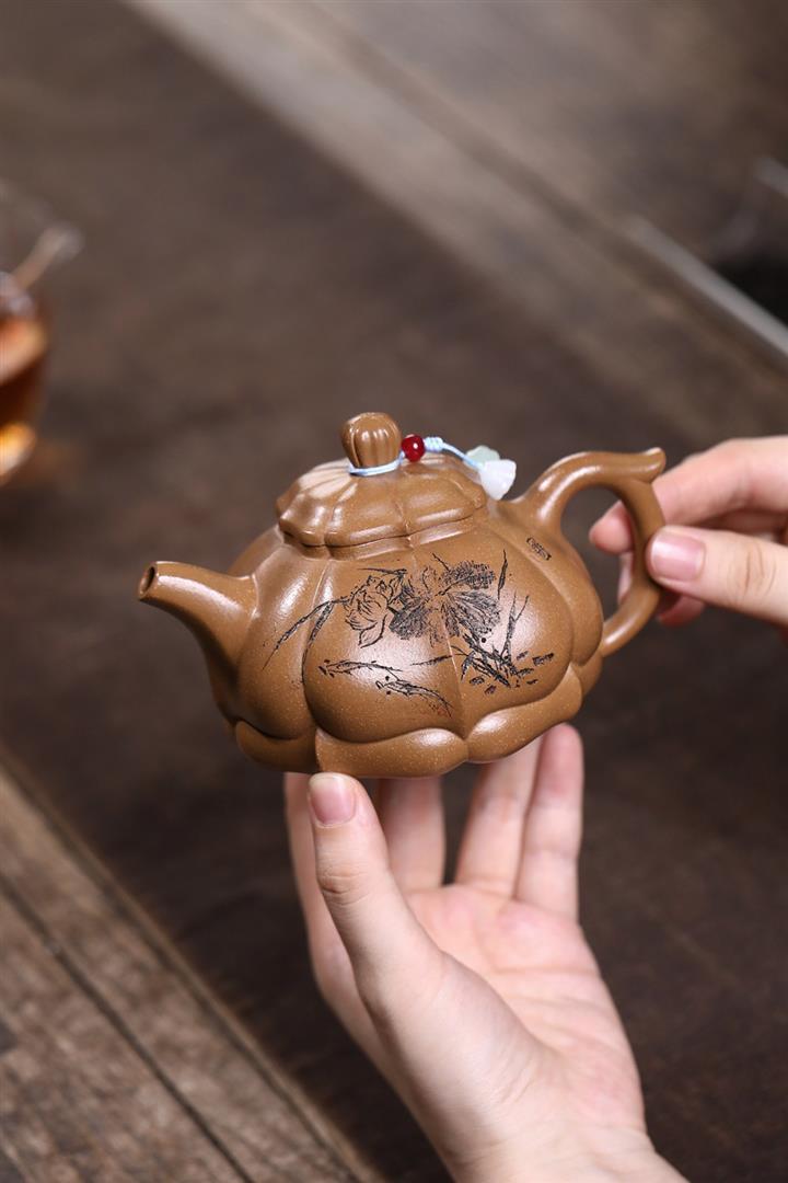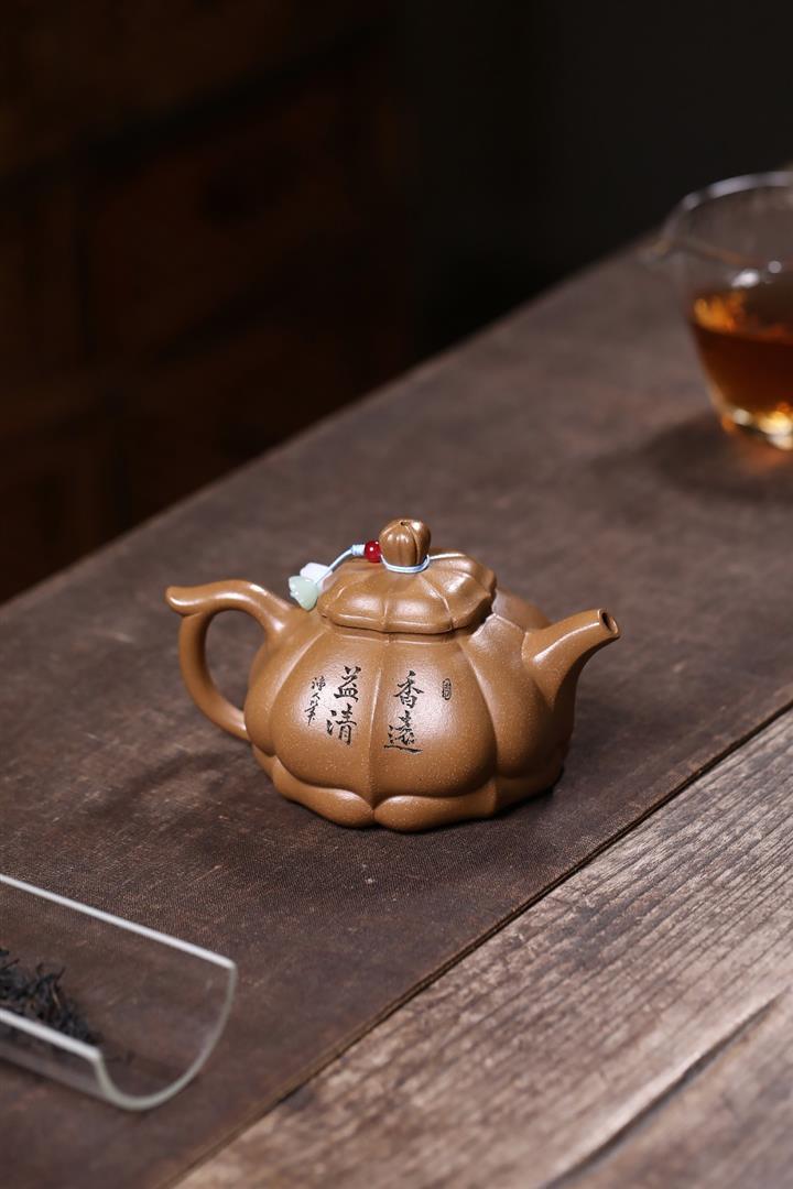 【作品介紹】此款壺形線條流暢,壺把,壺嘴,壺身壹氣呵成栩栩如生,是收藏把玩的好壺,泥料色澤古樸典雅,日久使用,漸露鋒芒,養成變化快,溫潤莊重,用其泡茶,使用的年代久,壺身就溫潤,泡出來的茶湯也就醇郁芳馨。