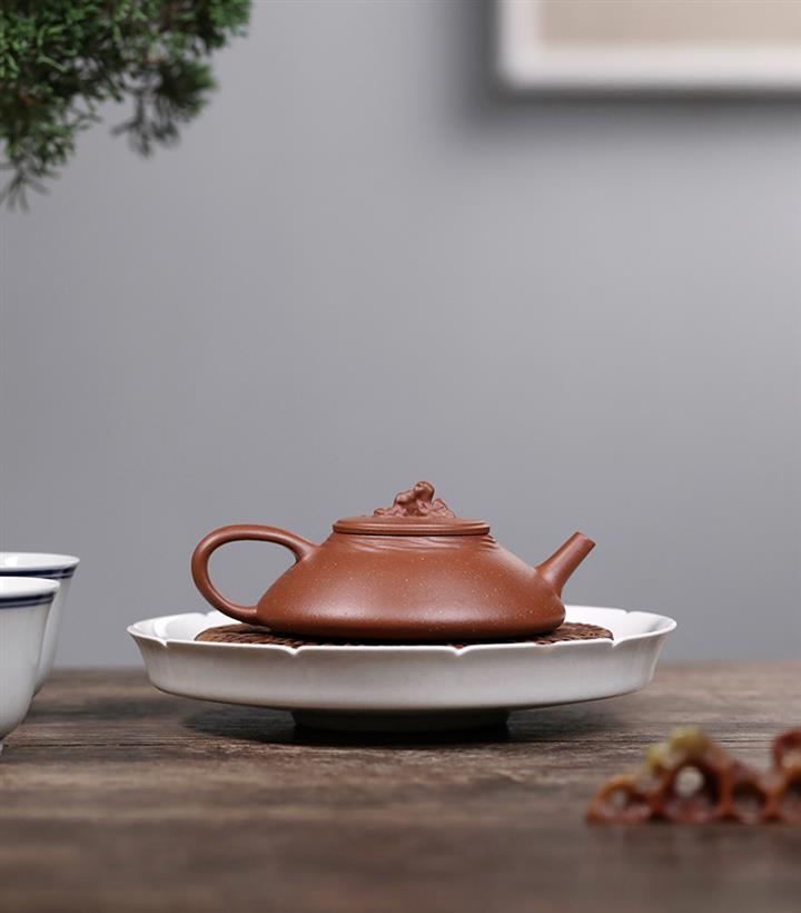 【泥料特點】砂土氣重,似淳實農民,日久使用,漸露鋒芒,養成變化,溫潤莊重。紫砂是壹種雙重氣孔結構的多孔性材質,氣孔微細,密度高。用紫砂壺沏茶,不失原味,且香不渙散,得茶之真香真味。紫砂使用越久,壺身色澤越發光亮照人,氣韻溫雅。紫砂壺長久使用器身會因撫摸擦拭,變得越發溫潤光澤。