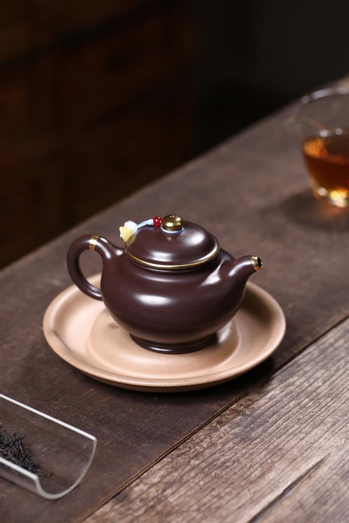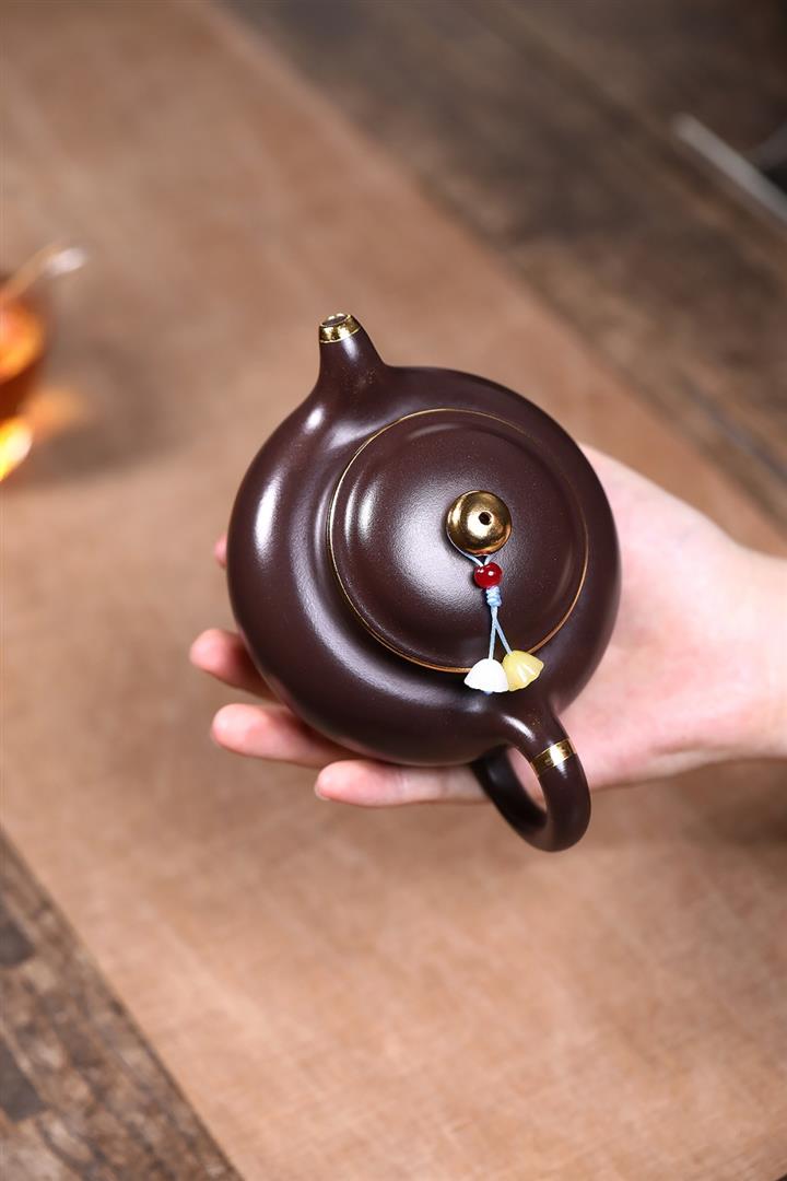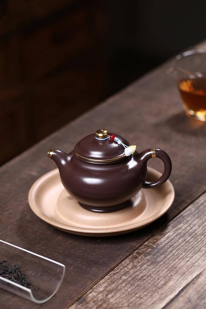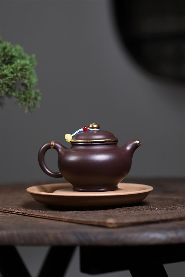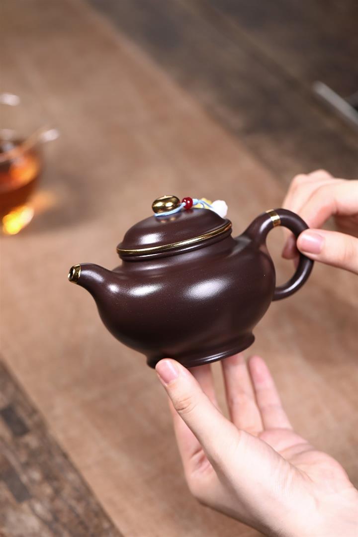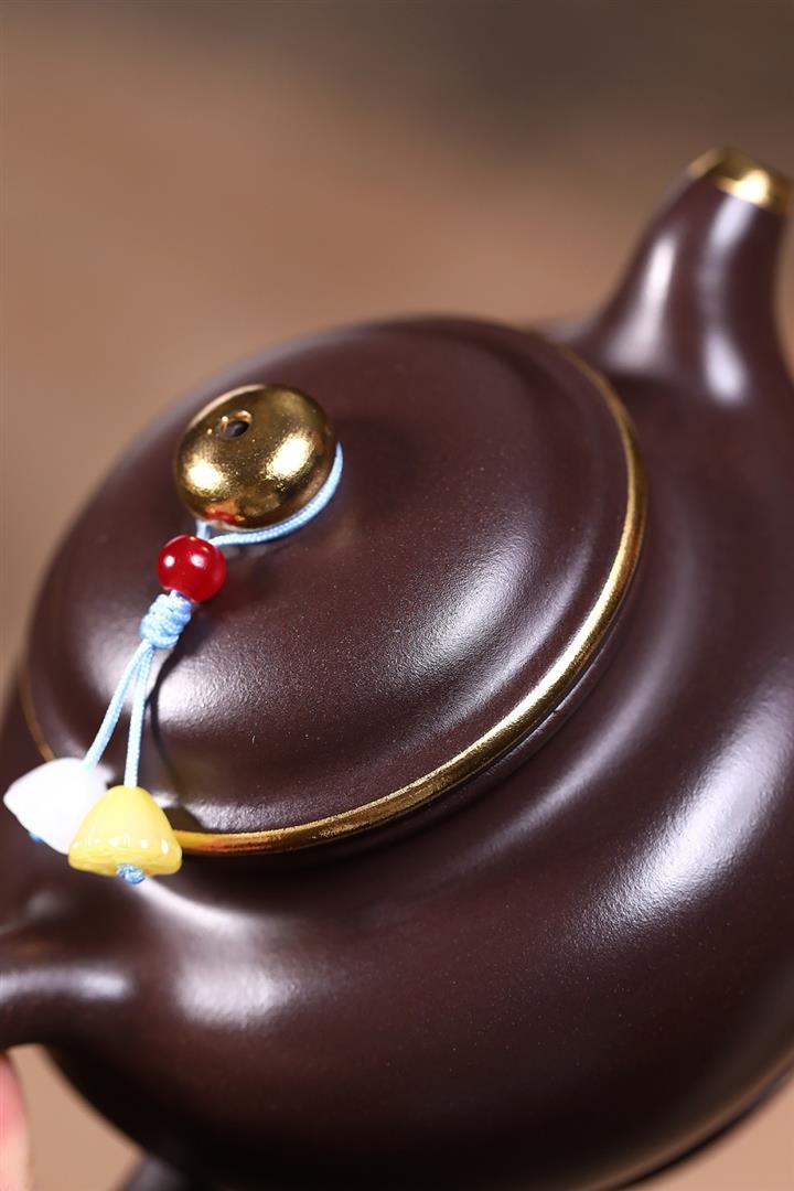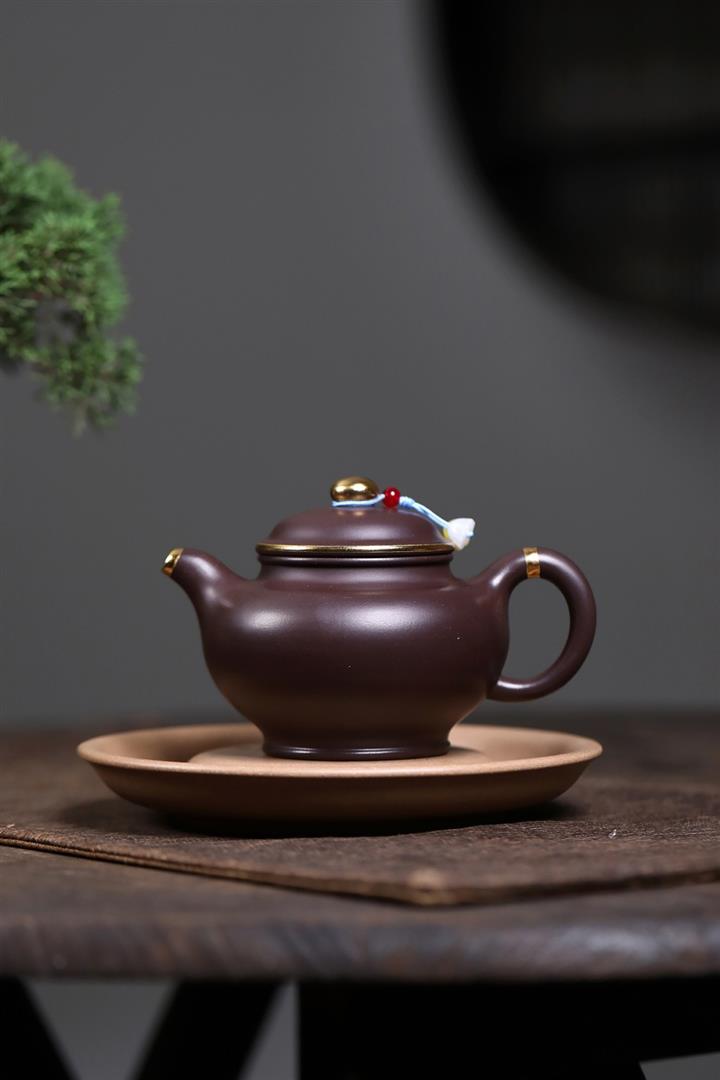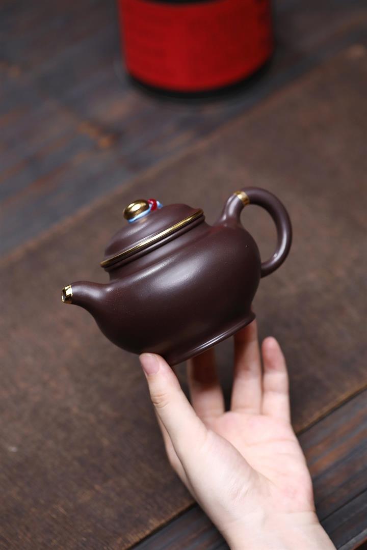 原礦百目紫泥描金文人掇只茶壺POT7814