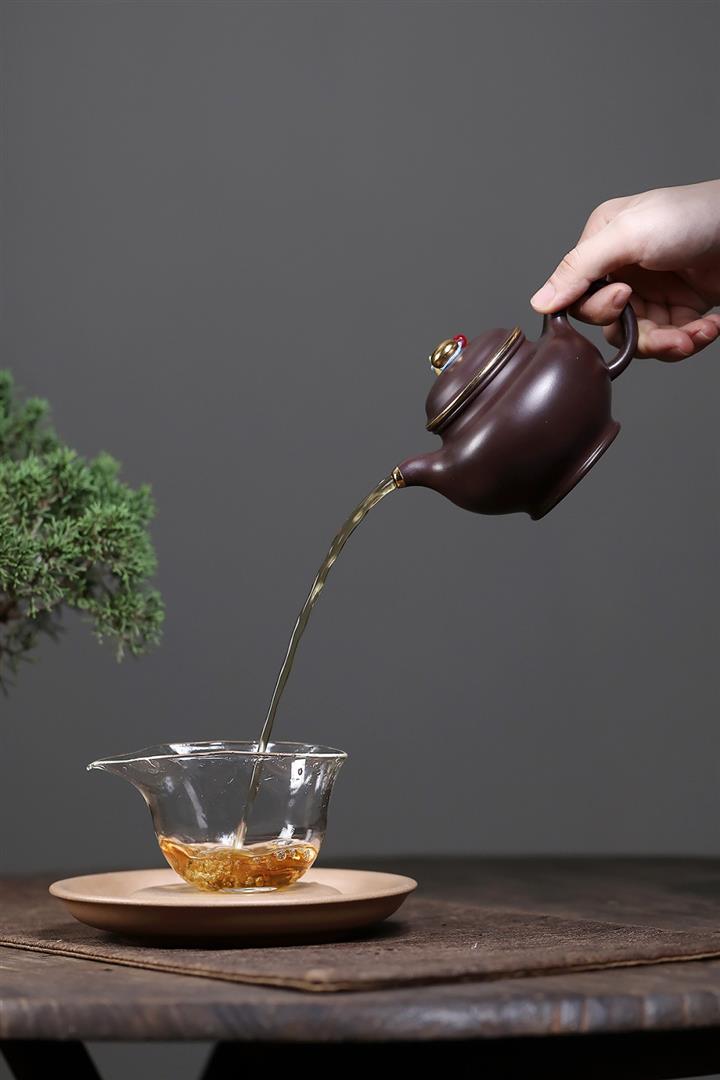 【泥料特點】砂土氣重,似淳實農民,日久使用,漸露鋒芒,養成變化,溫潤莊重。紫砂是壹種雙重氣孔結構的多孔性材質,氣孔微細,密度高。用紫砂壺沏茶,不失原味,且香不渙散,得茶之真香真味。紫砂使用越久,壺身色澤越發光亮照人,氣韻溫雅。紫砂壺長久使用器身會因撫摸擦拭,變得越發溫潤光澤。