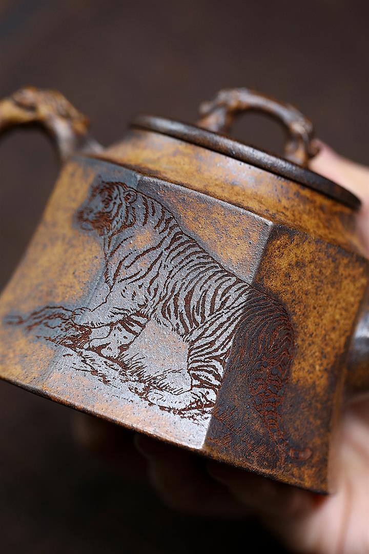 原礦段泥高溫柴燒六方金鐘茶壺POT7823