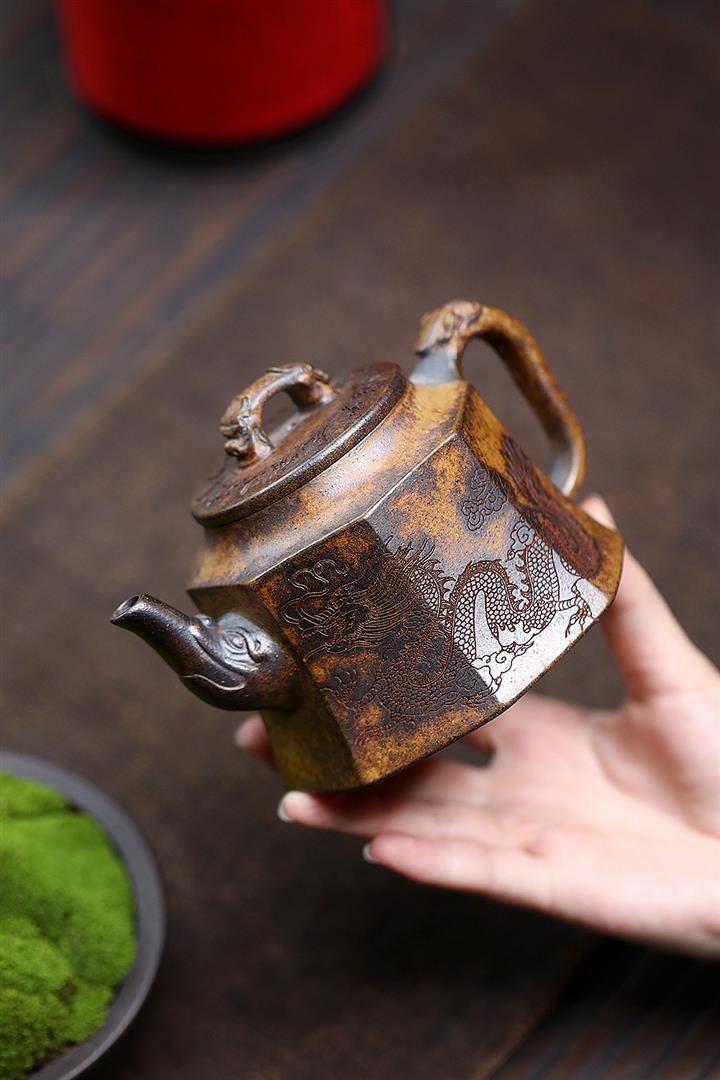 【作品介紹】此款壺形線條流暢,壺把,壺嘴,壺身壹氣呵成栩栩如生,是收藏把玩的好壺,泥料色澤古樸典雅,日久使用,漸露鋒芒,養成變化快,溫潤莊重,用其泡茶,使用的年代久,壺身就溫潤,泡出來的茶湯也就醇郁芳馨。