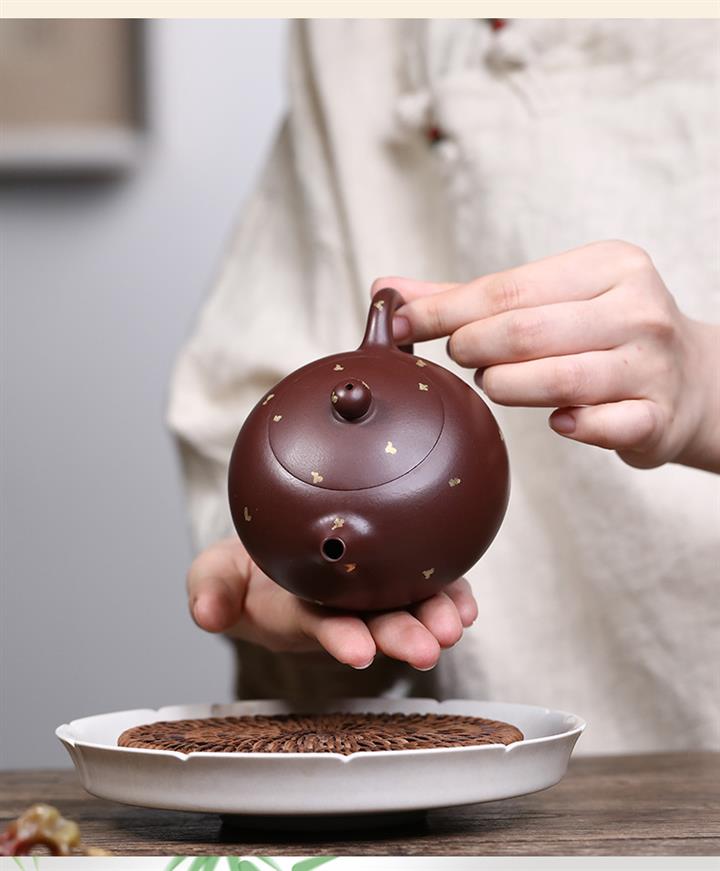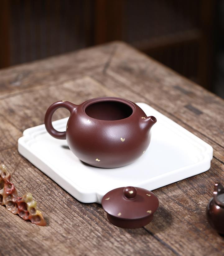 原礦紫玉金砂兔子圓瓦茶壺POT7837