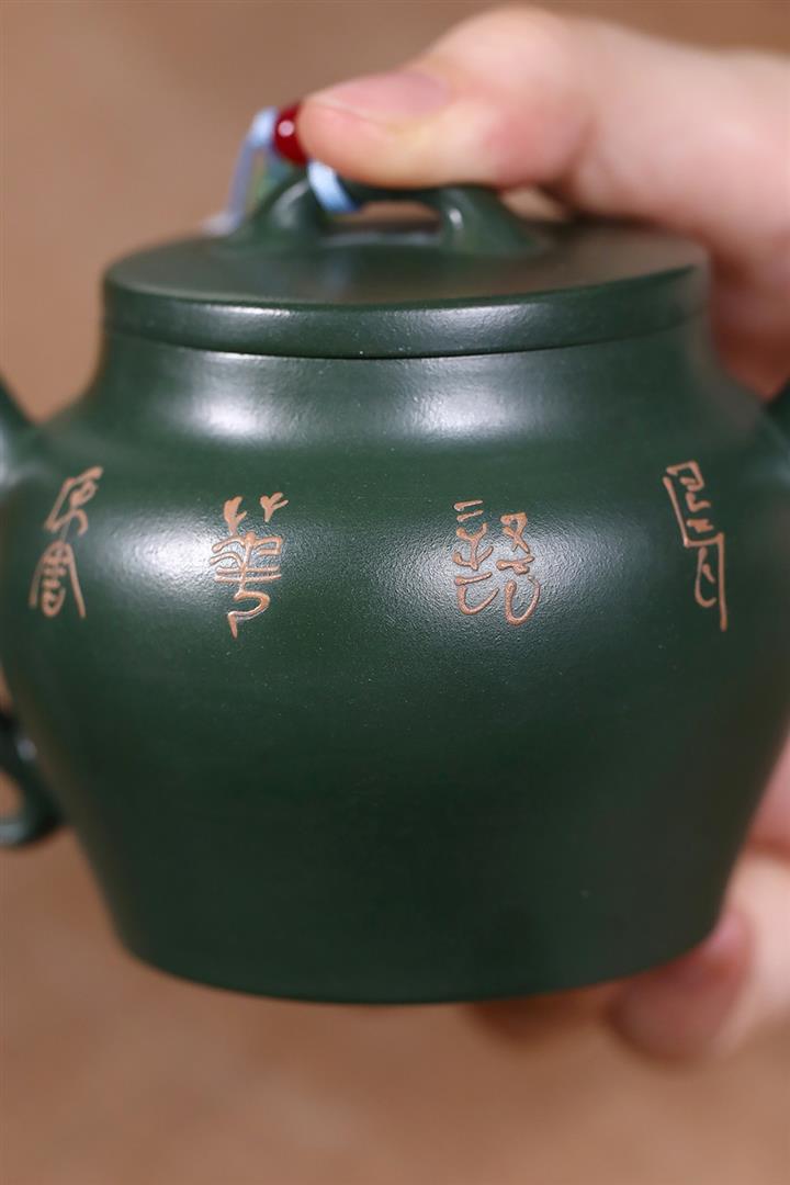 原礦綠泥滿刻三羊開胎茶壺POT7846