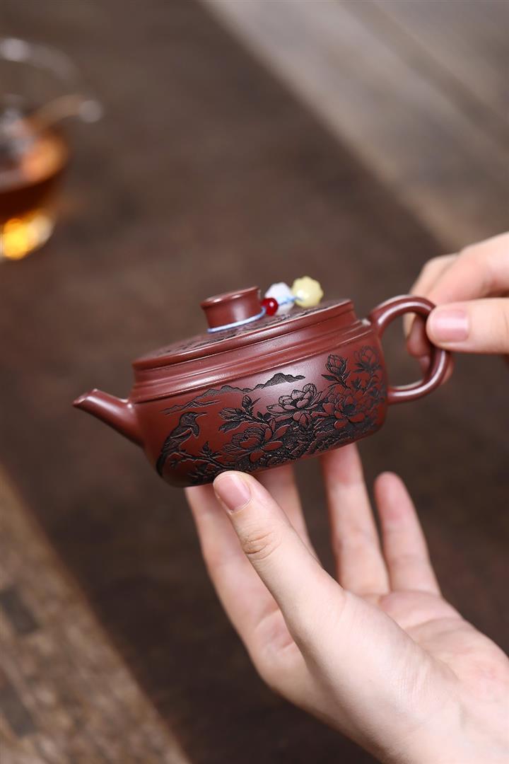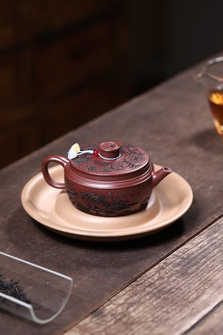 原礦紫泥滿刻納瓢泡茶壺POT7838