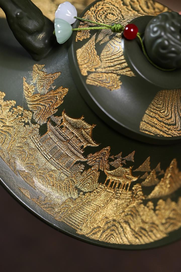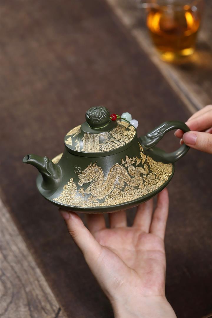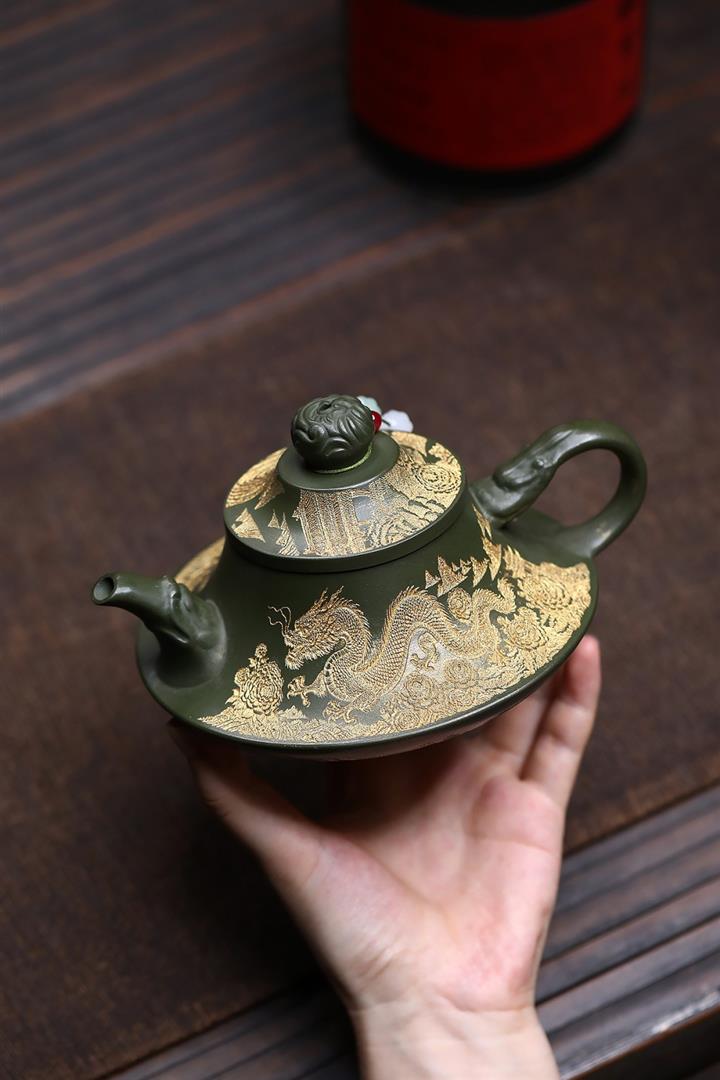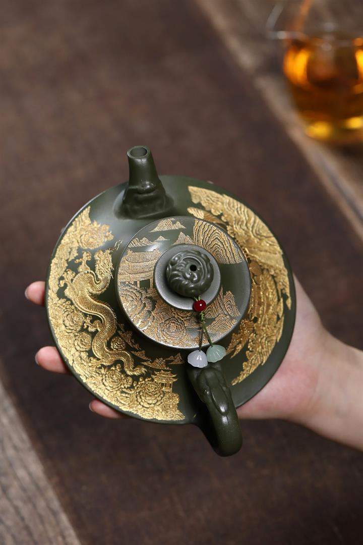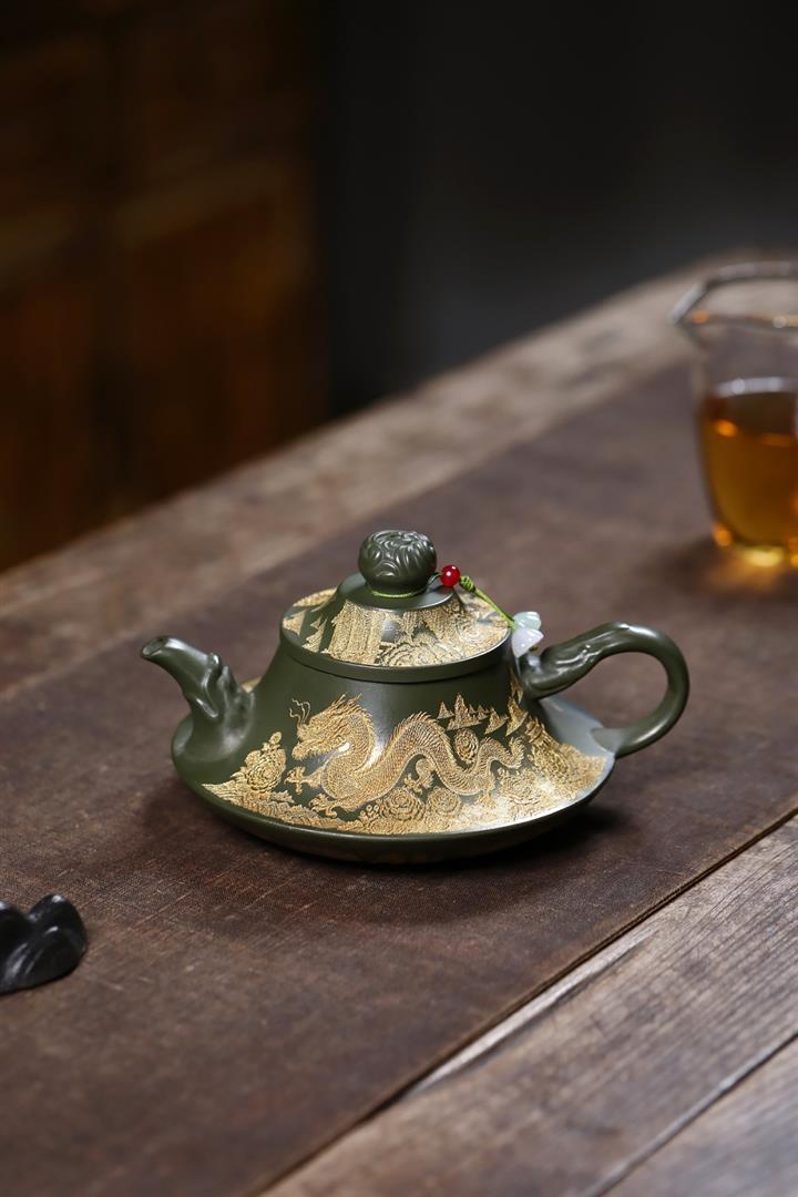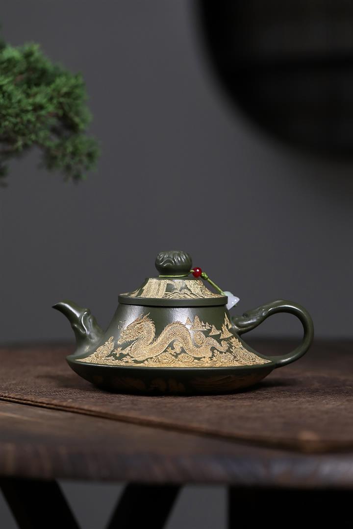 原礦墨綠泥龍鳳齊飛泡茶壺POT7845