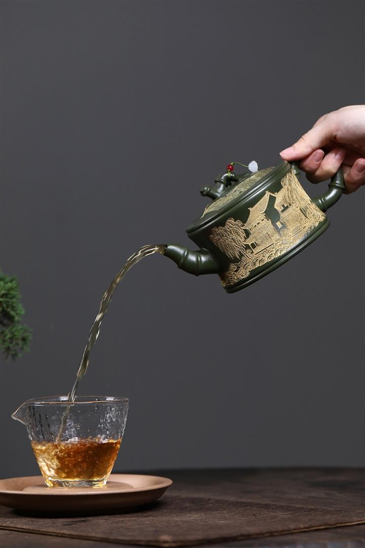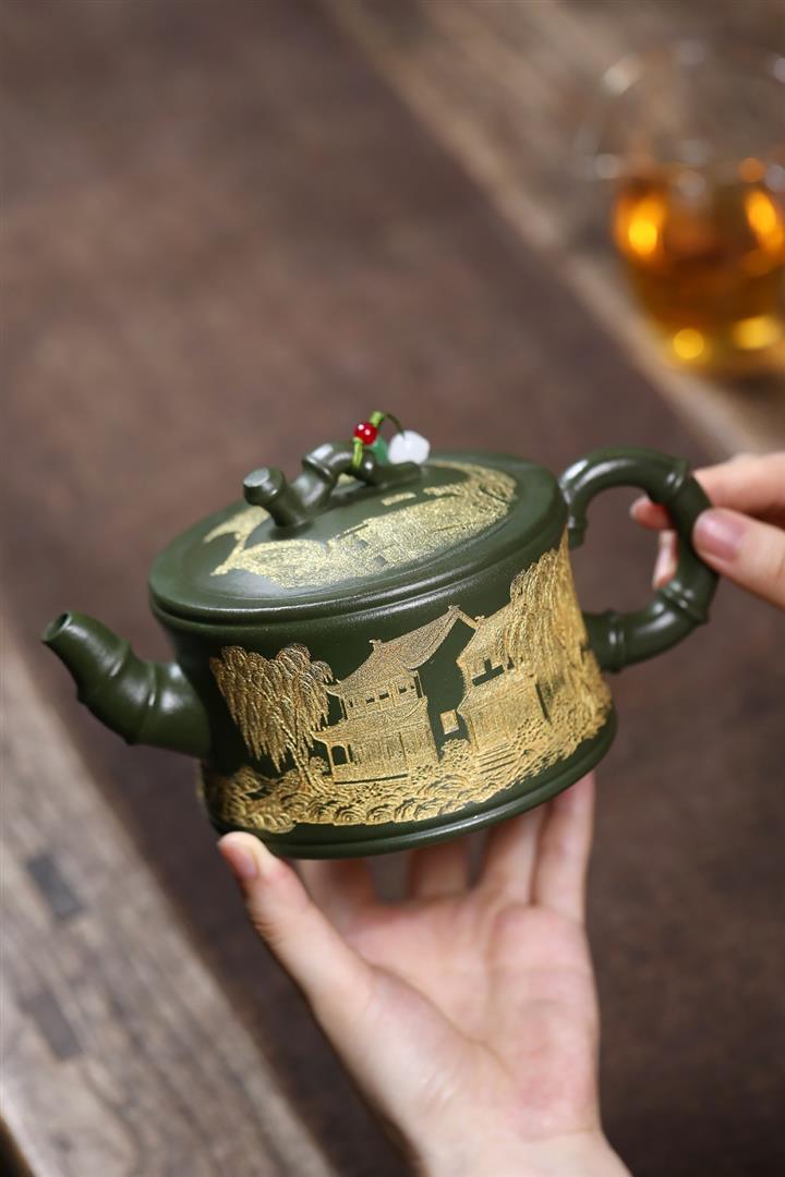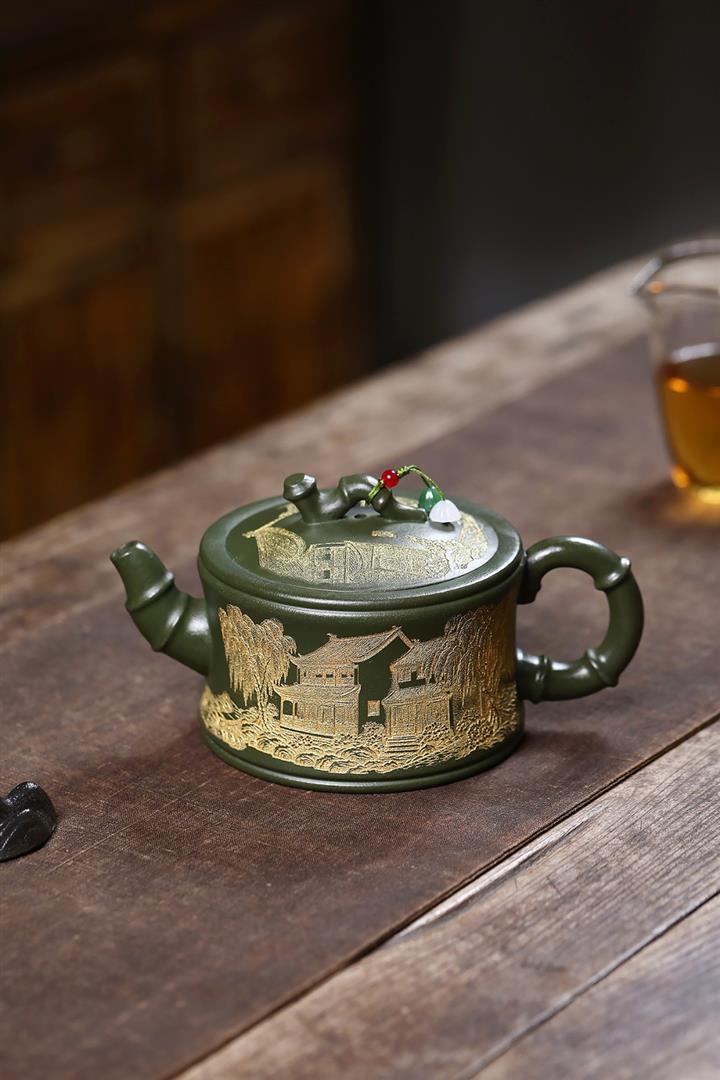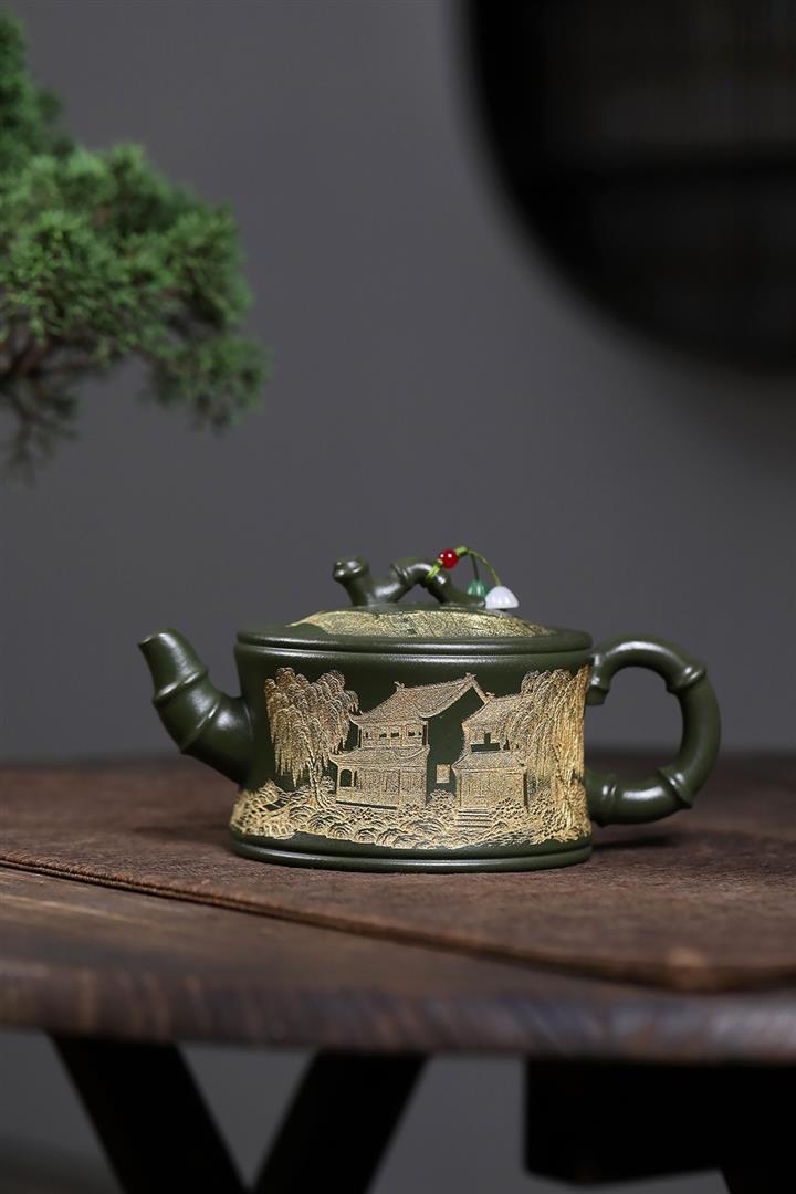 原礦綠泥花開富貴寒江泡茶壺POT7842