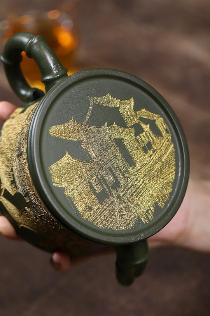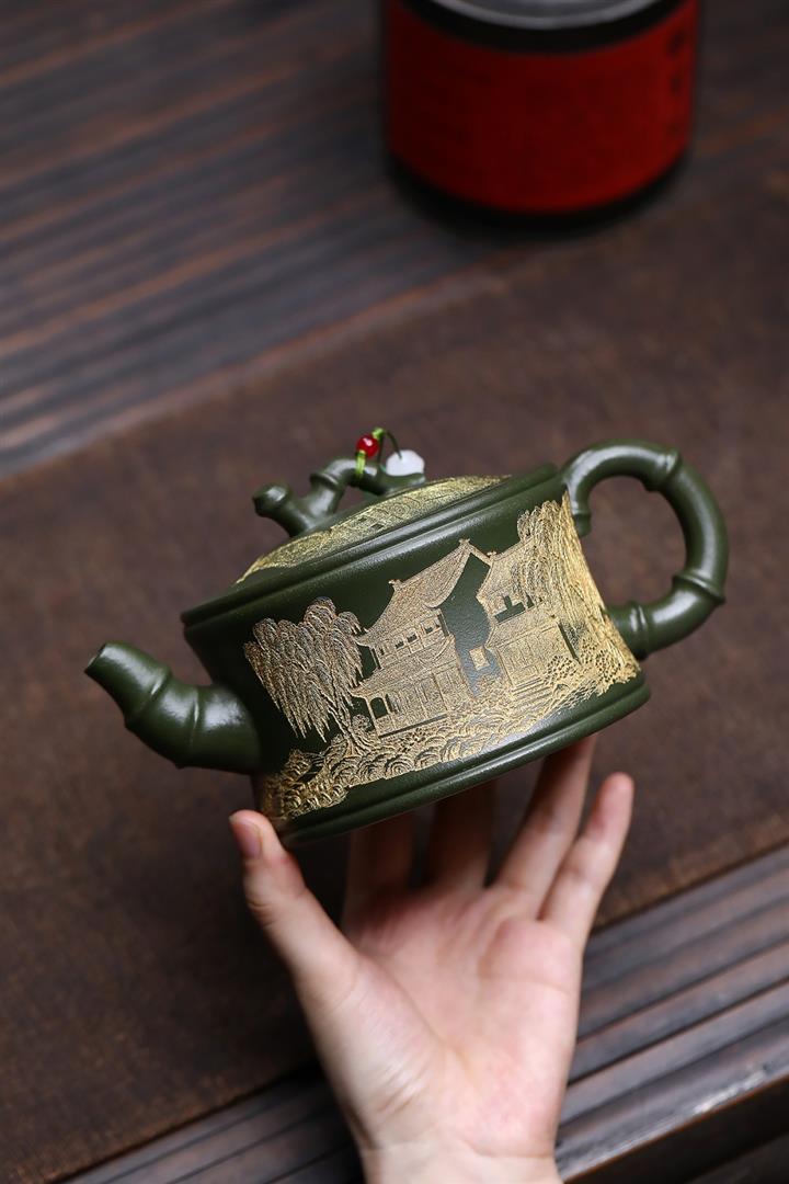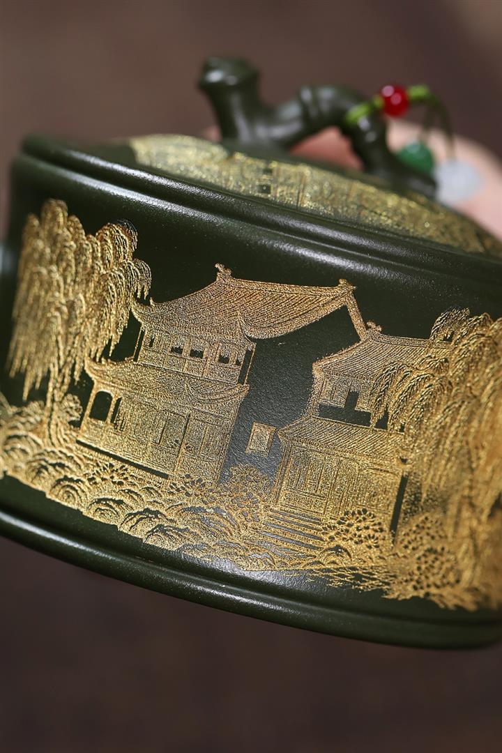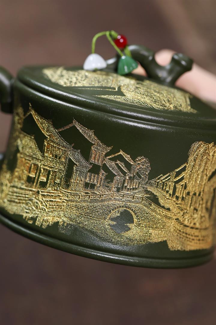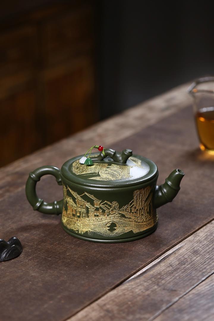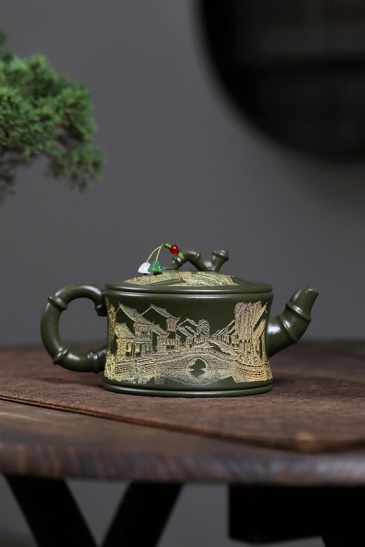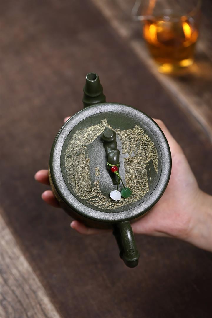 原礦綠泥千裏江山臥虎藏龍漢瓦壺POT7843