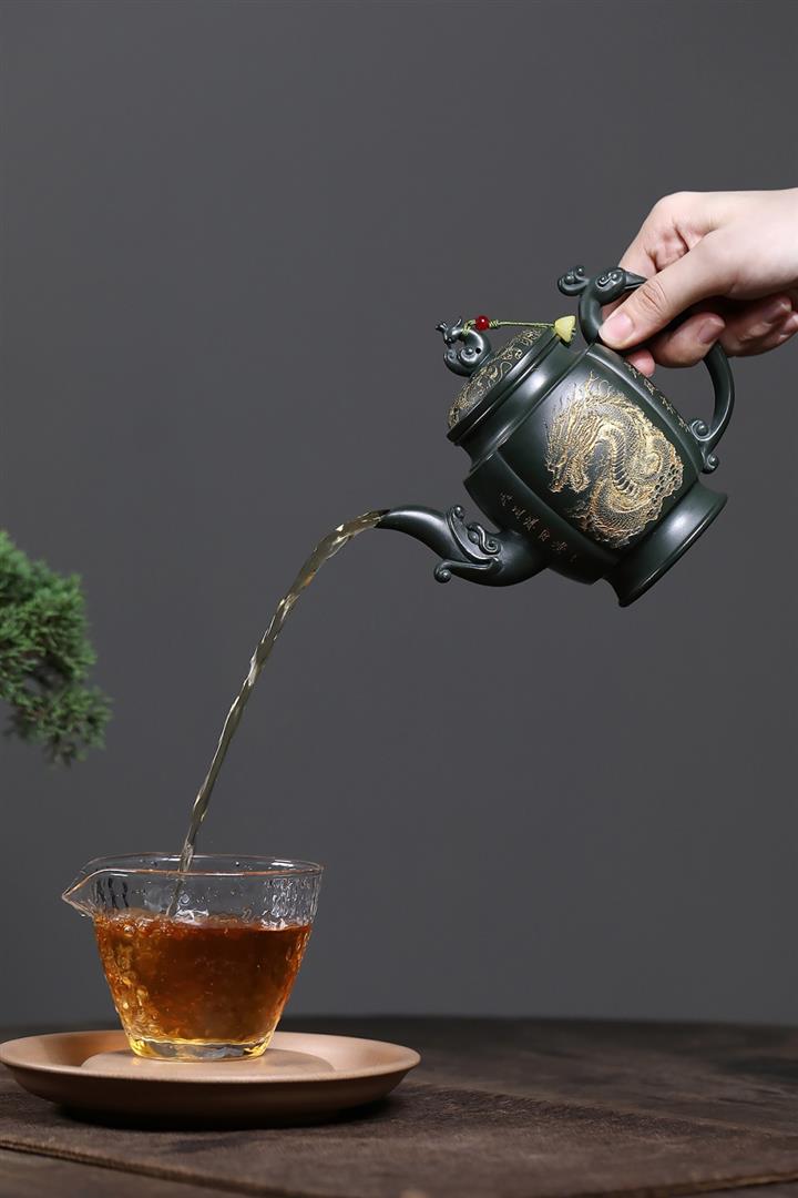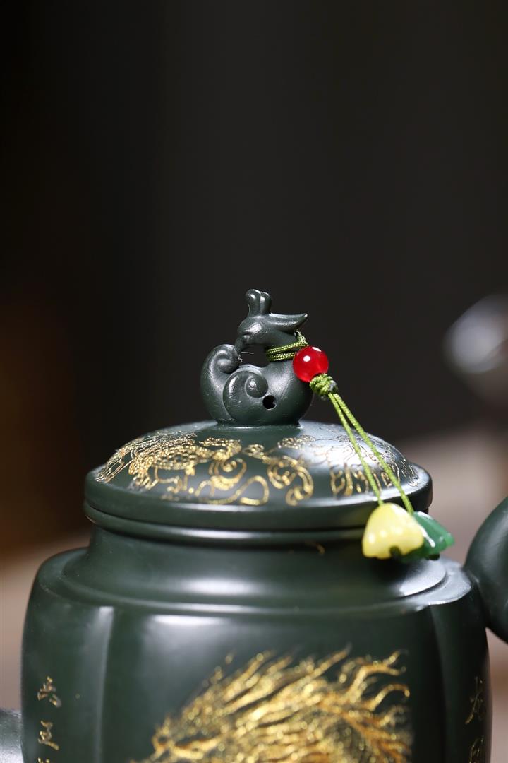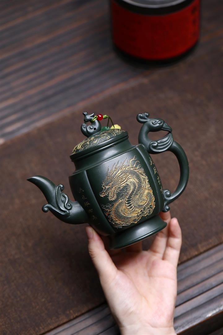 原礦墨綠泥龍鳳齊飛泡茶壺POT7845