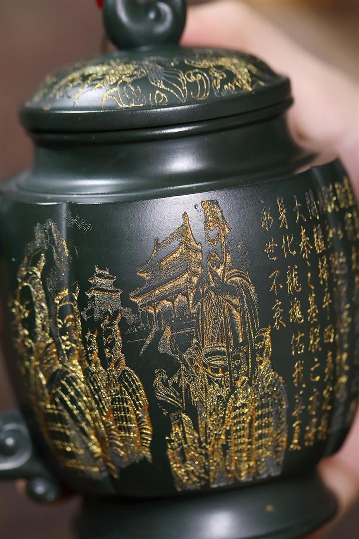 原礦綠泥滿刻三羊開胎茶壺POT7846
