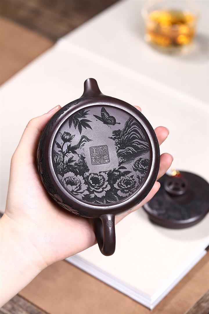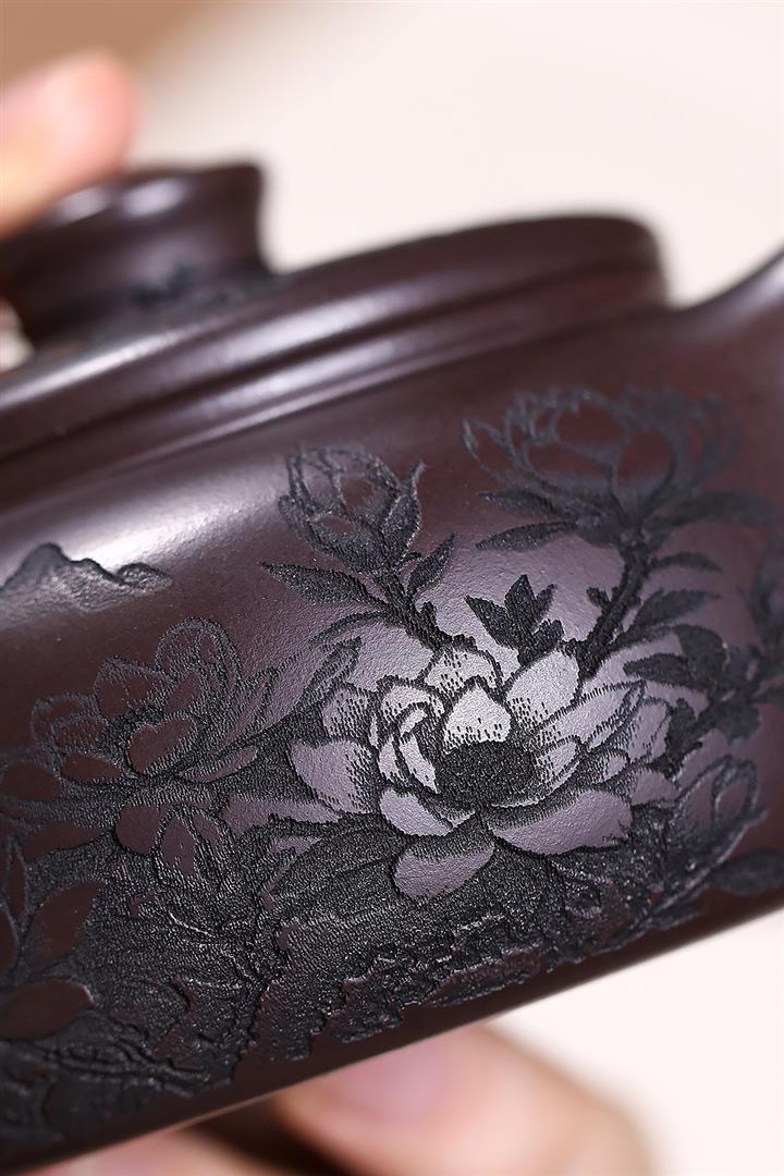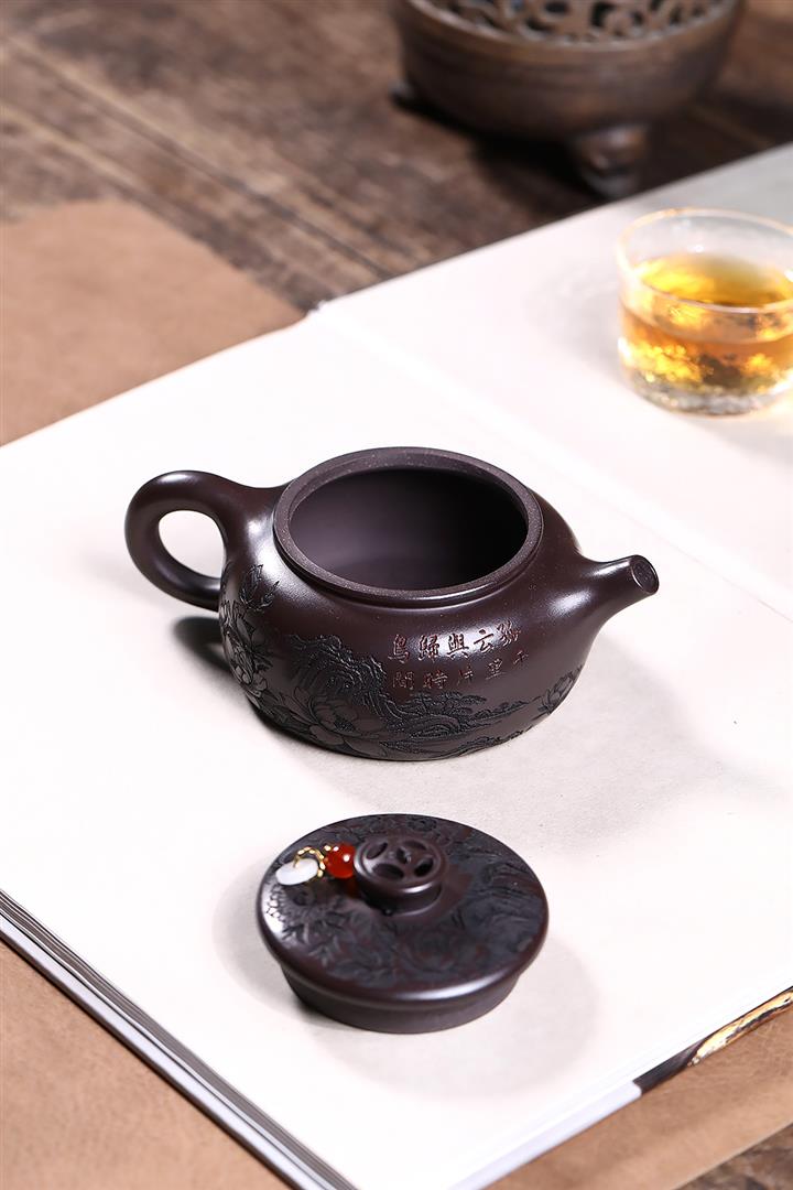 原礦段泥柴燒刻繪德鐘茶壺POT7864