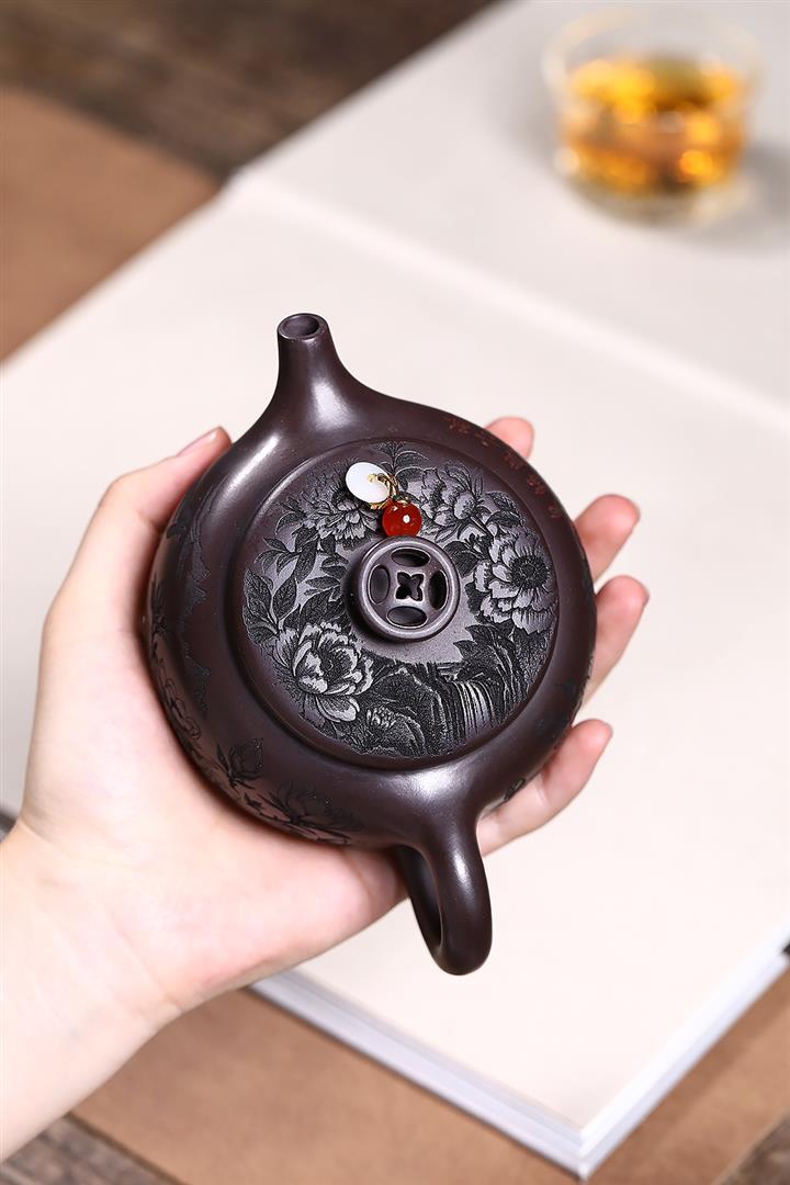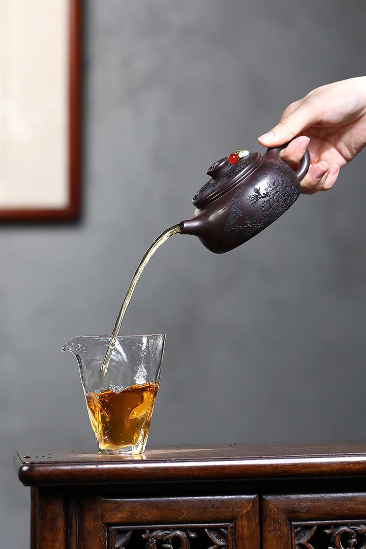 【泥料特點】砂土氣重,似淳實農民,日久使用,漸露鋒芒,養成變化,溫潤莊重。紫砂是壹種雙重氣孔結構的多孔性材質,氣孔微細,密度高。用紫砂壺沏茶,不失原味,且香不渙散,得茶之真香真味。紫砂使用越久,壺身色澤越發光亮照人,氣韻溫雅。紫砂壺長久使用器身會因撫摸擦拭,變得越發溫潤光澤。