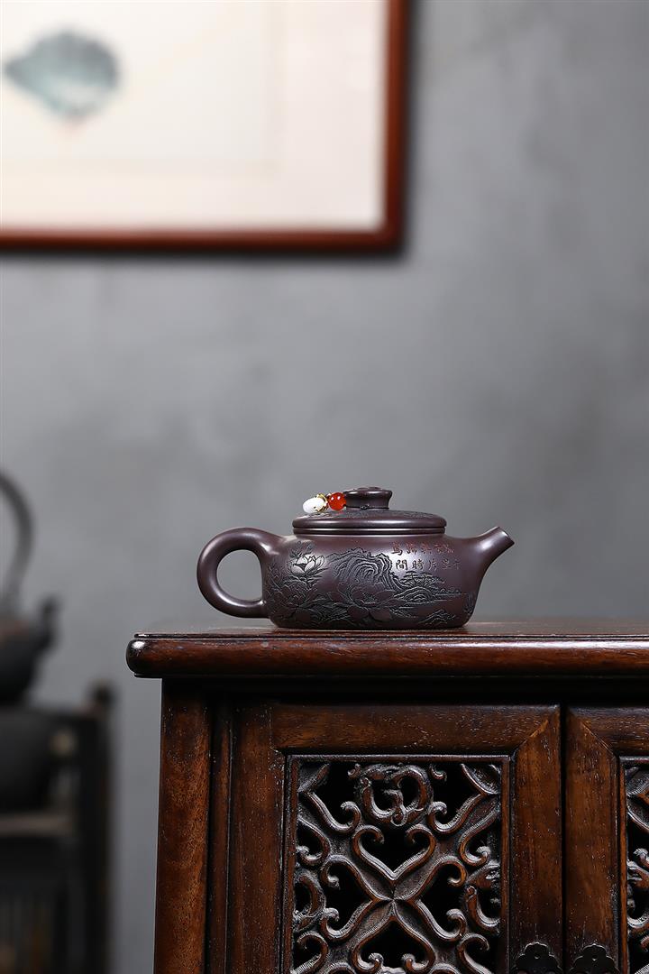 原礦紫泥刻繪龍尊泡茶壺POT7862