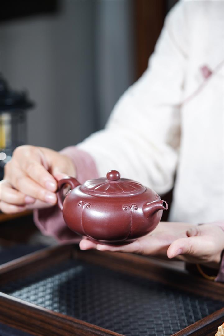 【泥料特點】砂土氣重,似淳實農民,日久使用,漸露鋒芒,養成變化,溫潤莊重。紫砂是壹種雙重氣孔結構的多孔性材質,氣孔微細,密度高。用紫砂壺沏茶,不失原味,且香不渙散,得茶之真香真味。紫砂使用越久,壺身色澤越發光亮照人,氣韻溫雅。紫砂壺長久使用器身會因撫摸擦拭,變得越發溫潤光澤。
