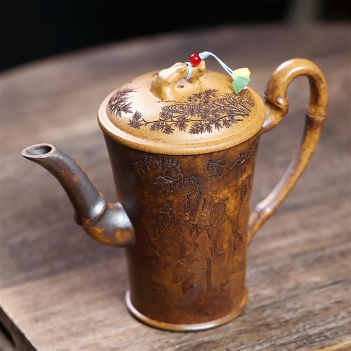 340cc原礦龍骨金砂竹林七賢竹筒茶壺POT8063