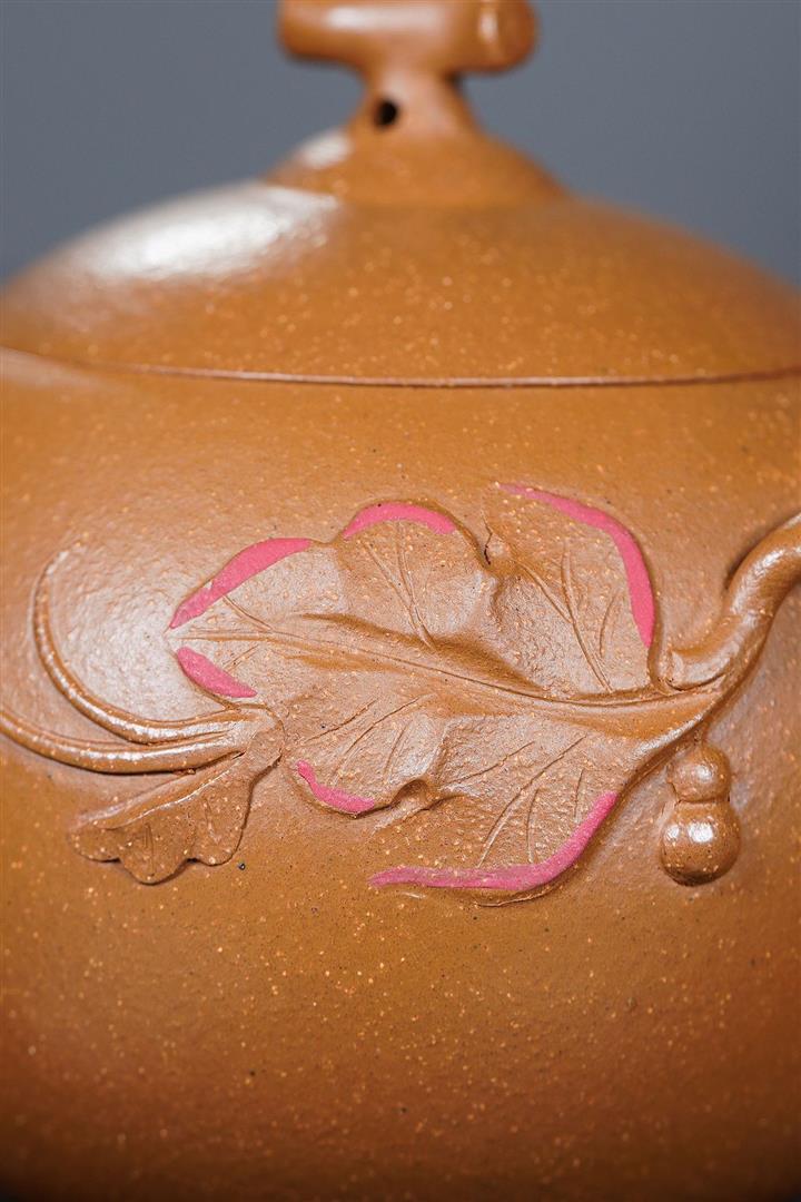 【泥料特點】砂土氣重,似淳實農民,日久使用,漸露鋒芒,養成變化,溫潤莊重。紫砂是壹種雙重氣孔結構的多孔性材質,氣孔微細,密度高。用紫砂壺沏茶,不失原味,且香不渙散,得茶之真香真味。紫砂使用越久,壺身色澤越發光亮照人,氣韻溫雅。紫砂壺長久使用器身會因撫摸擦拭,變得越發溫潤光澤。