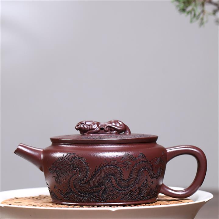 240cc原礦紫泥滿刻伏虎漢瓦茶壺POT8070