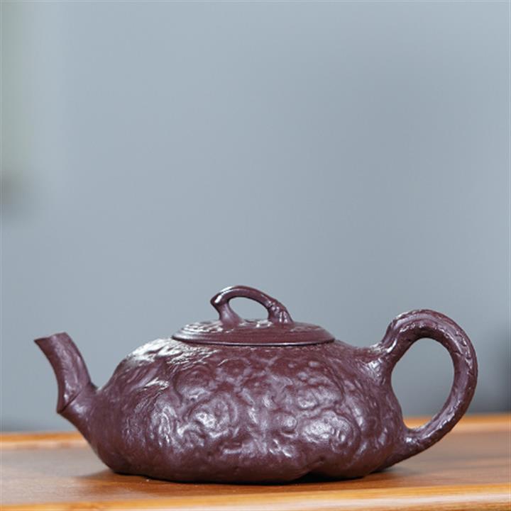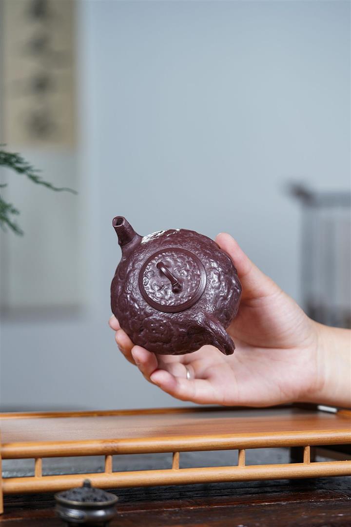 240cc原礦紫泥滿刻伏虎漢瓦茶壺POT8070
