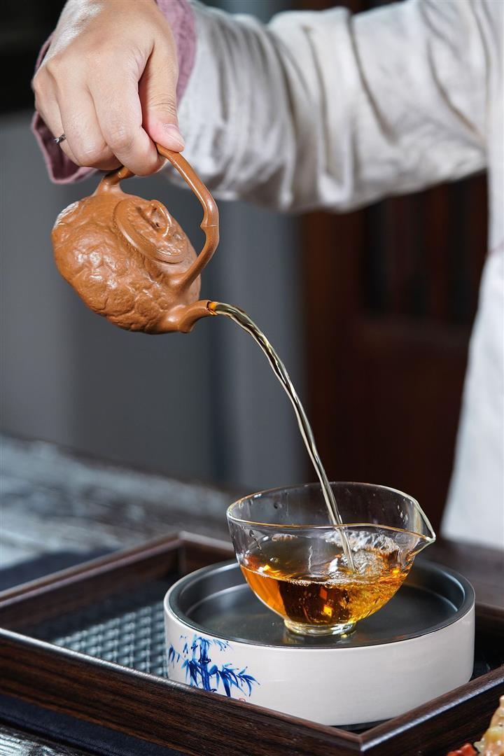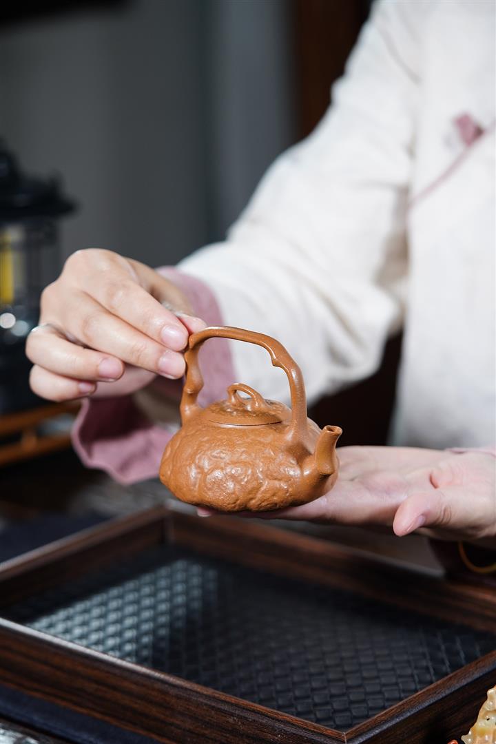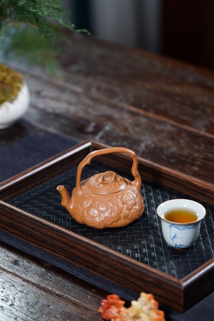 【泥料特點】砂土氣重,似淳實農民,日久使用,漸露鋒芒,養成變化,溫潤莊重。紫砂是壹種雙重氣孔結構的多孔性材質,氣孔微細,密度高。用紫砂壺沏茶,不失原味,且香不渙散,得茶之真香真味。紫砂使用越久,壺身色澤越發光亮照人,氣韻溫雅。紫砂壺長久使用器身會因撫摸擦拭,變得越發溫潤光澤。