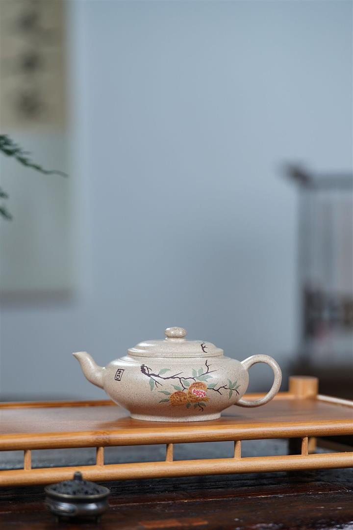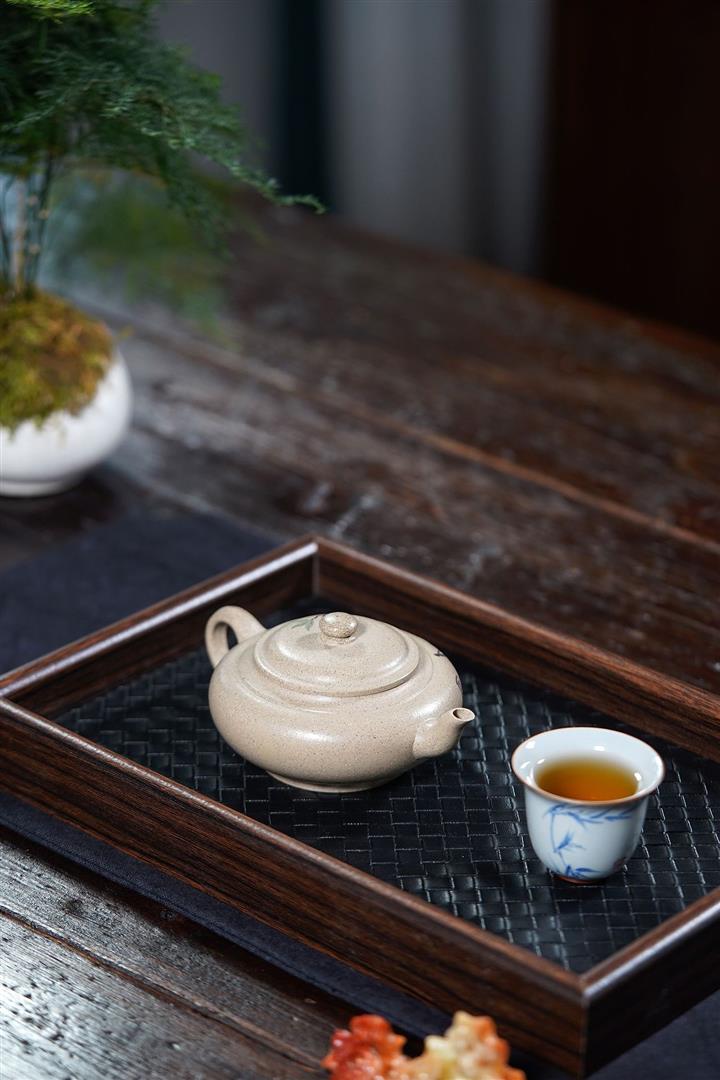 【泥料特點】砂土氣重,似淳實農民,日久使用,漸露鋒芒,養成變化,溫潤莊重。紫砂是壹種雙重氣孔結構的多孔性材質,氣孔微細,密度高。用紫砂壺沏茶,不失原味,且香不渙散,得茶之真香真味。紫砂使用越久,壺身色澤越發光亮照人,氣韻溫雅。紫砂壺長久使用器身會因撫摸擦拭,變得越發溫潤光澤。