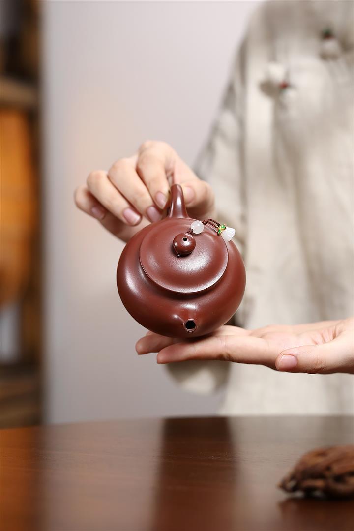 【泥料特點】砂土氣重,似淳實農民,日久使用,漸露鋒芒,養成變化,溫潤莊重。紫砂是壹種雙重氣孔結構的多孔性材質,氣孔微細,密度高。用紫砂壺沏茶,不失原味,且香不渙散,得茶之真香真味。紫砂使用越久,壺身色澤越發光亮照人,氣韻溫雅。紫砂壺長久使用器身會因撫摸擦拭,變得越發溫潤光澤。